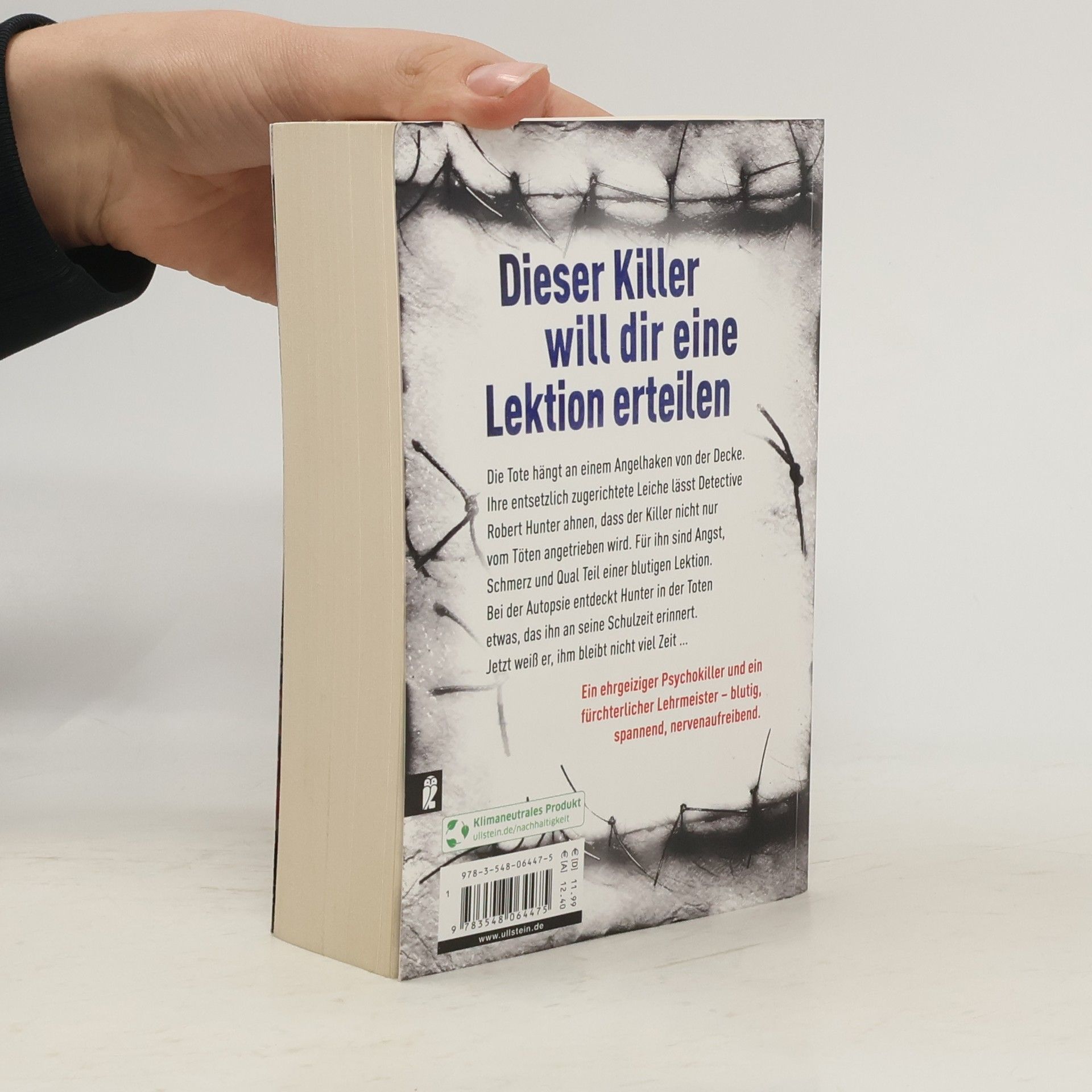 Eine entsetzlich zugerichtete Frauenleiche - und Furcht ist nur der Anfang Machen Sie sich bereit für einen neuen, blutigen Fall vom LAPD Ultra Violent Crimes Unit. Detective Robert Hunter und sein Partner Garcia jagen einen perfiden Serienkiller. Die blutige Art des Tötens ist nicht das Einzige, was diesen Killer antreibt. Für ihn sind Angst, Schmerz und der Tod Teil einer Lektion. Und er ist der Lehrmeister. Als eine zweite Frau grausam umgebracht wird, fragen Hunter und Garcia sich, wie viele Gedichte dieser Serienkiller noch schreiben wird. Ihnen bleibt nicht viel Zeit … ** Ein ehrgeiziger Psychokiller und ein fürchterlicher Lehrmeister – blutig, spannend, nervenaufreibend ** Der große Nr. 1-Bestseller aus England! Der 12. Band der Bestseller-Serie „Hunter und Garcia“: Die Serie um die Detectives Robert Hunter und Carlos Garcia von der Spezialeinheit für brutale Verbrechen des LAPD ist eine der besten und erfolgreichsten Thriller-Reihen. Autor Chris Carter hat jahrelang als Kriminalpsychologe für die Polizei in Los Angeles gearbeitet, das macht seine beiden furchtlosen Ermittler so einzigartig.