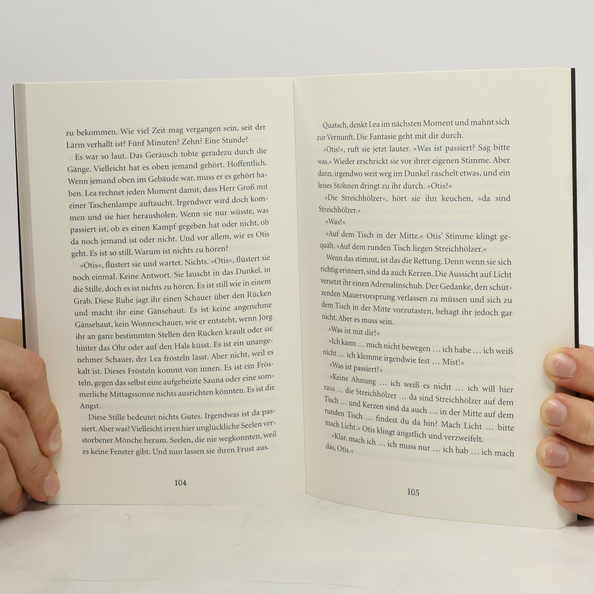 Otis will nur eine Flasche Wein aus dem Keller des alten Klosters holen. Da schlägt die Tür zu und das Licht geht aus. Zappenduster ist es. Doch es scheint noch jemand mit ihm eingesperrt zu sein: Lea, die arrogante Zicke aus der Parallelklasse. Ausgerechnet die! Aber aus dieser Nummer kommen sie nur gemeinsam raus. Sie tasten sich durch den Raum, erkunden das Gewölbe – und auch ihr Gegenüber. Zum ersten Mal lachen sie zusammen. Und zum ersten Mal berühren sie sich. Ein Kammerspiel im Dunkeln. Ab 13 Jahren