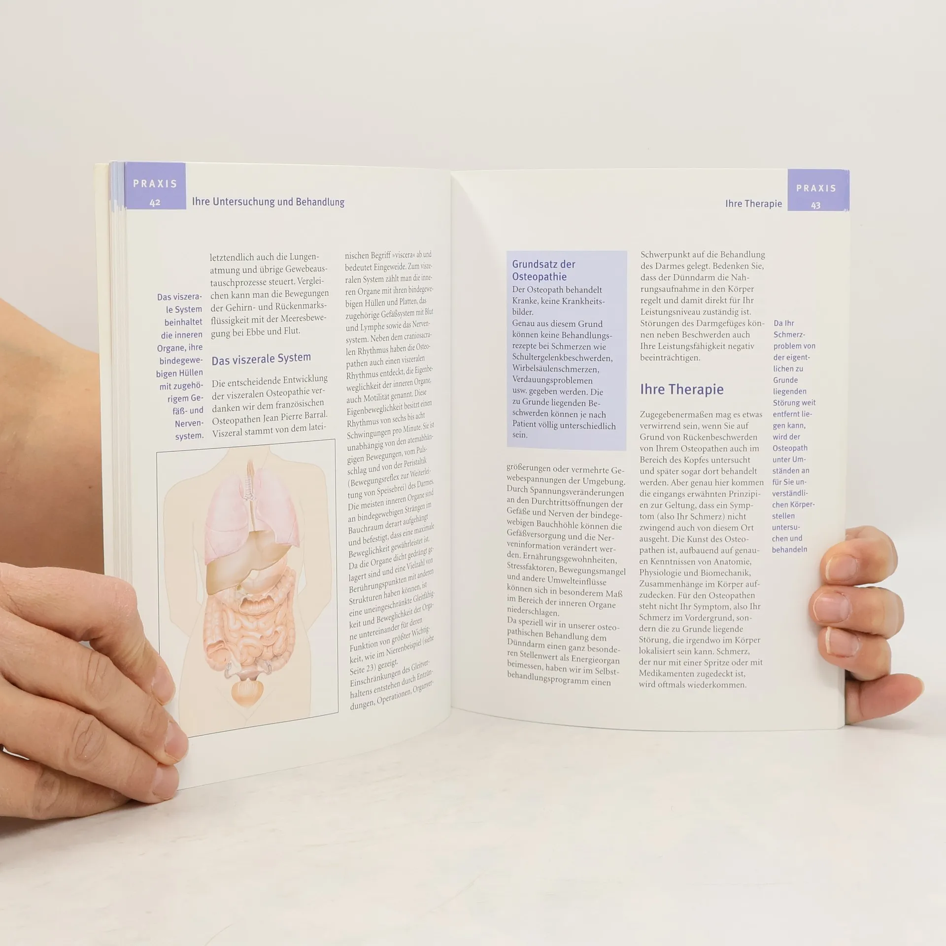 Alle Organe, Knochen und Muskeln sind wie in einem Netzwerk eng miteinander verknüpft. Solange ihr Zusammenspiel untereinander funktioniert, ist der Mensch gesund. Sobald aber die kleinste Einschränkung oder Verspannung entsteht, ist der Körper in seiner natürlichen Beweglichkeit eingeschränkt und erkrankt. Die Harmonie im Körper wieder herzustellen ist Aufgabe des Osteopathen. Mit sanften Handgriffen erspürt er die Barriere im Körpergewebe und löst sie durch leichten Druck. Dadurch werden die Selbstheilungskräfte des Körpers aktiviert, und die Energie im Körper kann fließen. Diese ganzheitliche, manuelle Therapie wurde vor ca. 130 Jahren in den USA entwickelt und ist heute dort fester Bestandteil der medizinischen Versorgung. Bei uns gilt die Osteopathie noch als Geheimtipp und wird von Ärzten, Heilpraktikern und Physiotherapeuten ausgeübt. Von Hexenschuss über Bandscheibenvorfall bis zu Migräne und Allergien - da nicht nur verkrampfte Muskeln und schmerzende Gelenke, sondern auch Organe beeinflusst werden, lassen sich alle Funktionsstörungen des Körpers mit Osteopathie behandeln. Erstmalig wird in einem Ratgeber ein Selbstbehandlungs-Programm angeboten, das es dem Patienten ermöglicht, kleinere Blockaden selbst zu erkennen und zu lösen.