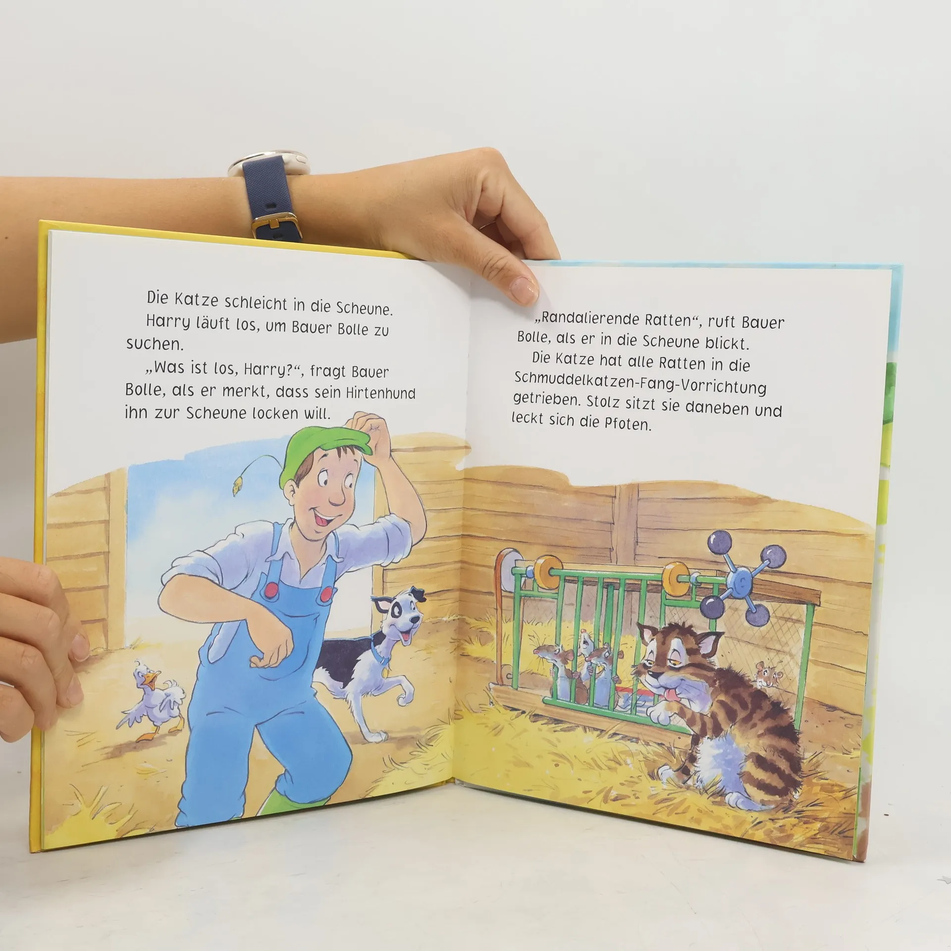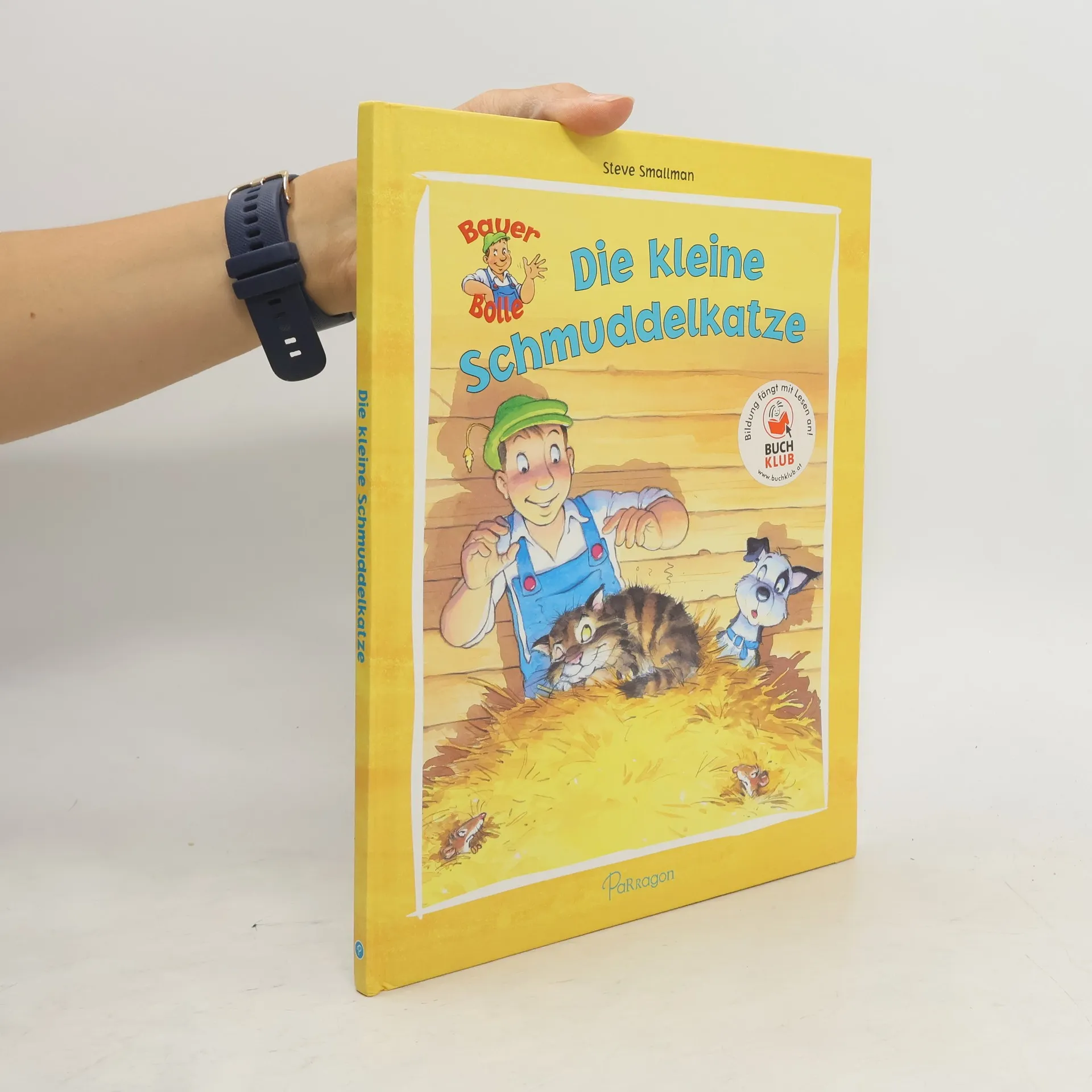 Lustige Bauernhofgeschichte zum Vorlesen und Mitlachen! • Bauer Bolle findet immer eine Lösung: Eine spannende Geschichte mit lustiger Erfindung und überraschender Wendung! • Liebenswerte Bauernhof-Bewohner: ein freundlicher Bauer, ein roter Traktor und jede Menge lustige Tiere! • Umschlag extraknuffig für kleine Kinderhände und mit edlem Glanzeffekt In diesem liebenswert und kunterbunt illustrierten Bilderbuch erwartet Kinder ein weiteres lustiges Abenteuer mit Bauer Bolle und seinen Tieren. Die Aufregung ist groß: Irgendwer hat alle Hafersäcke in der Scheune angeknabbert. War es die kleine Schmuddelkatze? Bauer Bolle hat schon eine Idee, wie er dem Futterdieb auf die Schliche kommen kann. Dem beliebten Zeichner Steve Smallman gelingt es ganz wunderbar, die liebenswerten Charaktere seiner Bauernhofgeschichten mit leichtem Strich und viel Humor kindgerecht und mit starkem Ausdruck aufs Papier zu bringen. Kinder freuen sich auf ein Wiedersehen mit dem treuen Hirtenhund Harry, Fred, dem frechen Ferkel, und Pjotr, Bauer Bolles starkem Pferd. Zudem enthält das Buch zwei liebenswerte Extras: Wer kann die lustige Scherzfrage am Anfang des Buches beantworten? Die letzte Seite verrät die Lösung - aber erst einmal sollte man natürlich selbst überlegen. Und wer findet die beste Melodie für das kleine Katzenlied, das Bauer Bolle fröhlich anstimmt?