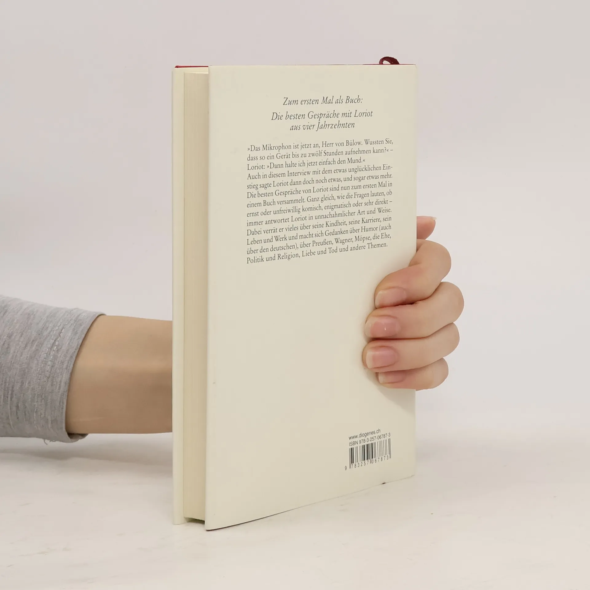»Das Mikrophon ist jetzt an, Herr von Bülow. Wussten Sie, dass so ein Gerät bis zu zwölf Stunden aufnehmen kann?« Loriot: »Dann halte ich jetzt einfach den Mund.« Auch in diesem Interview mit dem etwas unglücklichen Einstieg sagte Loriot dann doch noch etwas, und sogar etwas mehr. Die besten Gespräche von Loriot sind nun zum ersten Mal in einem Buch versammelt. Ganz gleich, wie die Fragen lauten, ob ernst oder unfreiwillig komisch, enigmatisch oder klar immer antwortet Loriot in seiner unnachahmlichen Art und Weise. Dabei verrät er vieles über seine Kindheit, seine Karriere, sein Leben und Werk und macht sich Gedanken über Humor (auch über den deutschen), über Preußen, Wagner, Möpse, die Ehe, Politik und Religion, Liebe und Tod und andere gefragte Themen.