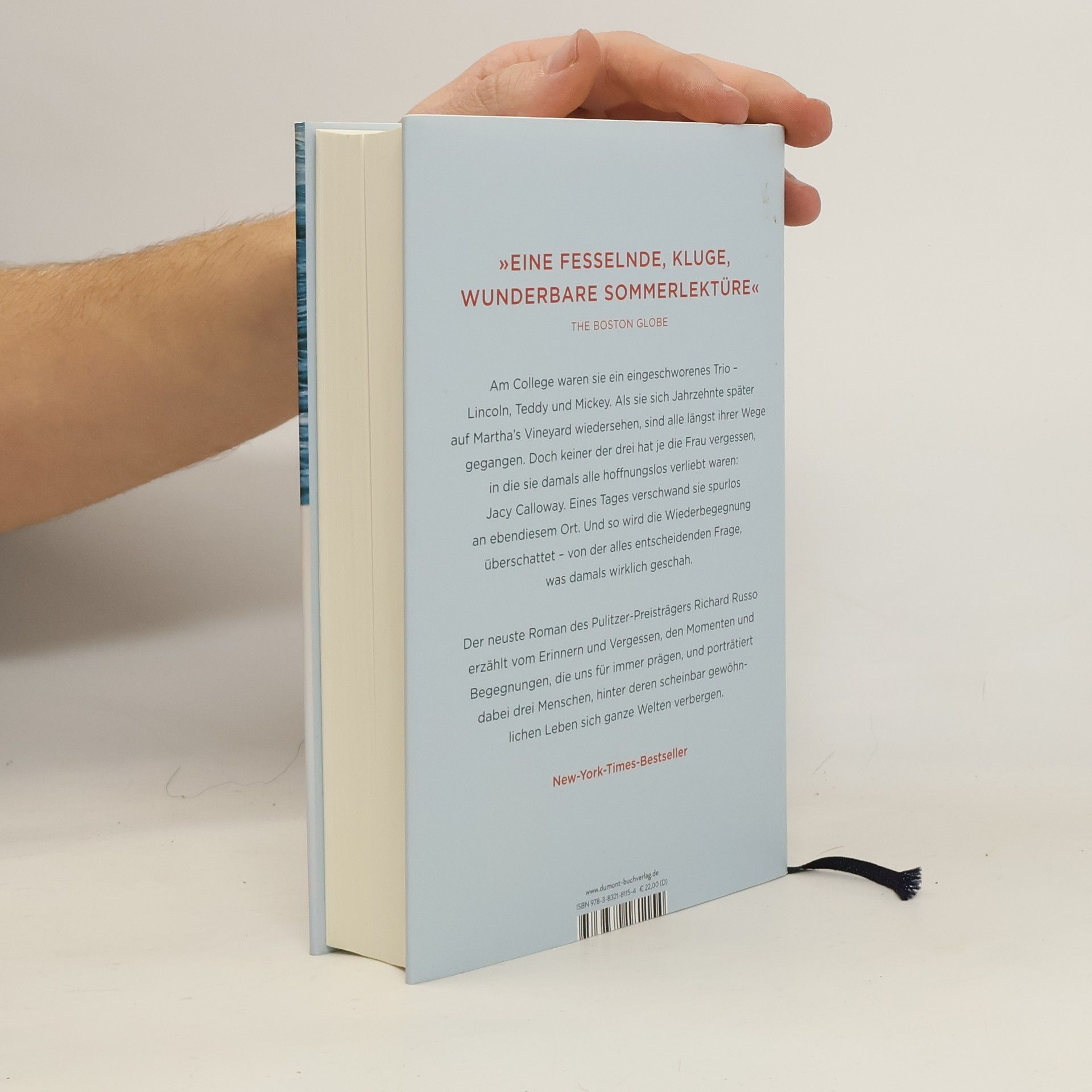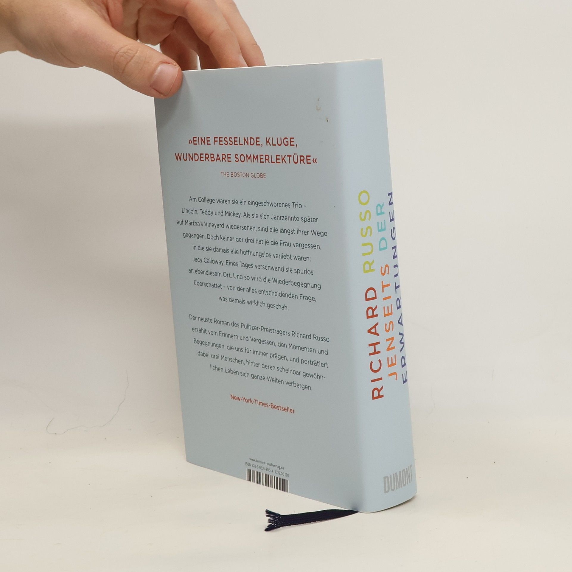 An einem Spätsommertag auf Martha’s Vineyard treffen sie sich wieder: Lincoln, Teddy und Mickey. Die drei Männer planen, das Wochenende in einem Ferienhaus auf der Insel zu verbringen – um der alten Zeiten willen. Seit dem Studium zu Vietnamkriegszeiten sind sie miteinander befreundet. Sie sind sehr unterschiedliche Wege gegangen, doch alle waren sie einst in dasselbe Mädchen verliebt, Jacy Calloway. Kurz nach ihrem Abschluss verschwand Jacy spurlos. Aber keiner von ihnen hat die Freundin vergessen – oder die Frage, wen von ihnen Jacy eigentlich liebte. Schließlich beginnt Lincoln, sich erneut mit den Umständen ihres rätselhaften Verschwindens zu beschäftigen. Was ist damals wirklich passiert? Richard Russo erzählt von drei Menschen, die sich fremd geworden sind, und vom Umgang mit der Unsicherheit, ob die eigenen Lebensentscheidungen die richtigen waren. Wie nebenbei ergibt sich daraus das Porträt eines Landes, das sich selbst nicht mehr ganz versteht. Mit ›Jenseits der Erwartungen‹ zeigt Russo seine ganze Könnerschaft – als großer Erzähler und als Menschenkenner.