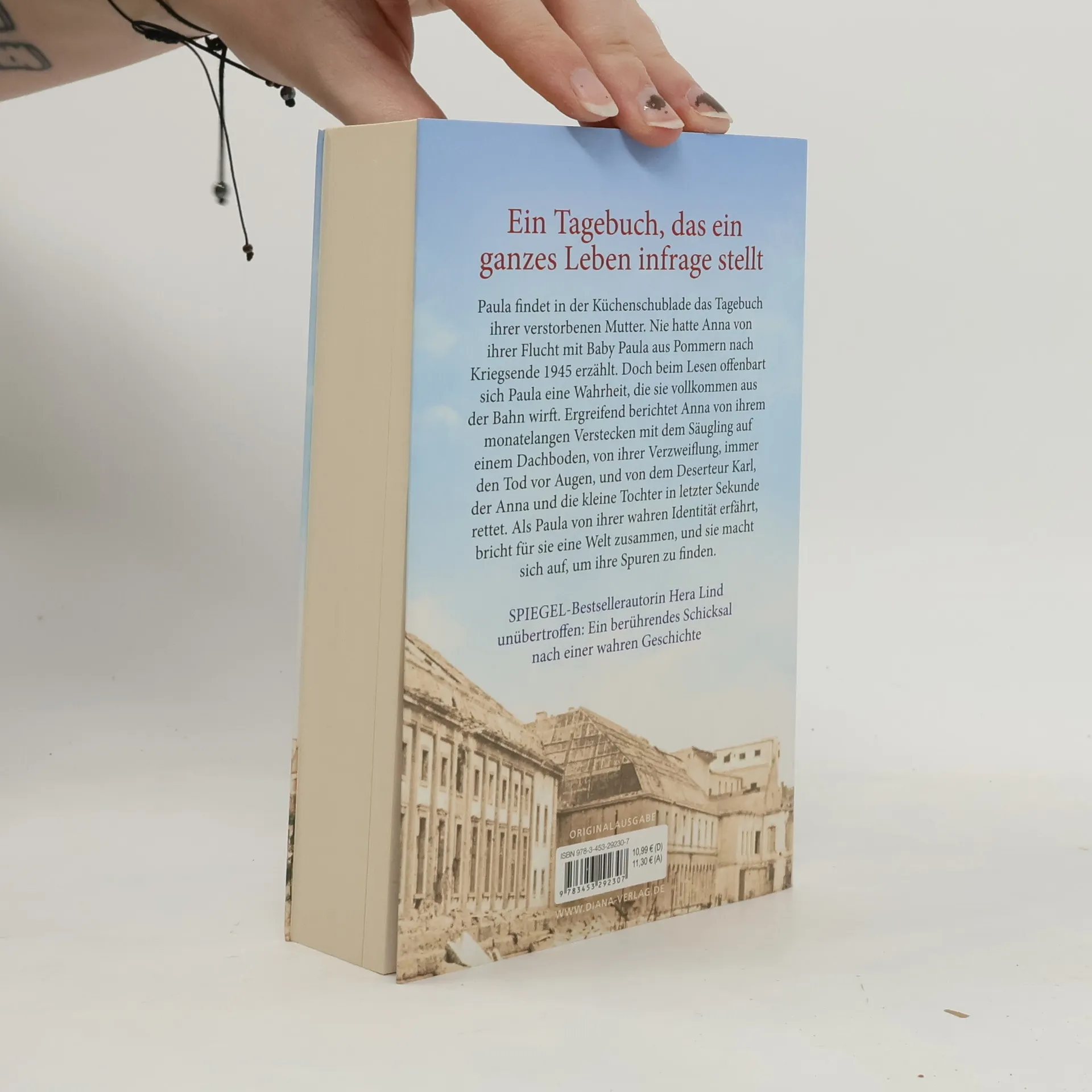 Paula findet in einer Küchenschublade das Tagebuch ihrer verstorbenen Mutter. Nie hatte Anna von ihrer Flucht mit Baby Paula aus Pommern nach Kriegsende 1945 erzählt. Doch beim Lesen offenbart sich Paula eine Wahrheit, die sie vollkommen aus der Bahn wirft. Ergreifend berichtet Anna von ihrem monatelangen Verstecken mit dem Säugling auf einem Dachboden, von ihrer Verzweiflung, immer den Tod vor Augen, und von dem Deserteur Karl, der Anna und die kleine Tochter in letzter Sekunde rettet. Als Paula von ihrer wahren Identität erfährt, bricht für sie eine Welt zusammen, und sie macht sich auf, um ihre Spuren zu finden.