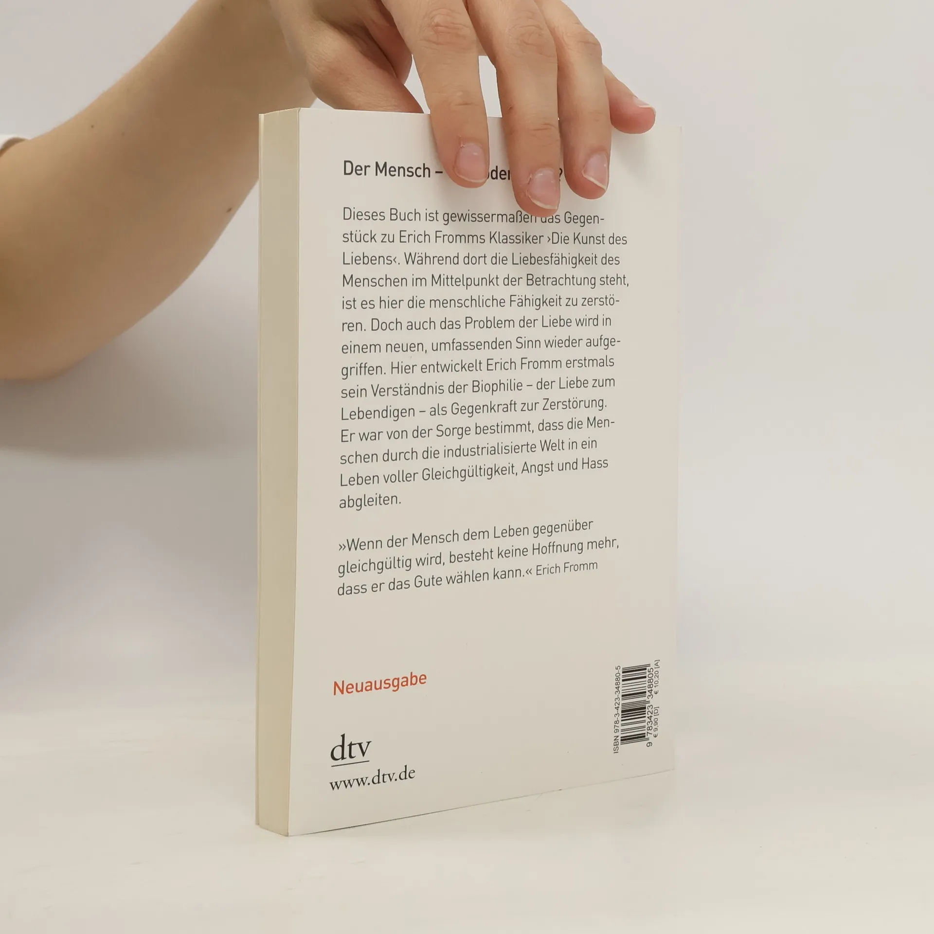Mit Erich Fromm den Menschen verstehen Erich Fromm thematisiert in diesem Buch die Fähigkeit des Menschen zu zerstören, seinen Narzissmus und seine inzestuöse Fixierung. Für Fromm erhebt sich die Frage, »ob wir uns auf eine neue Barbarei zubewegen ... oder ob eine Renaissance unserer humanistischen Tradition möglich ist«.