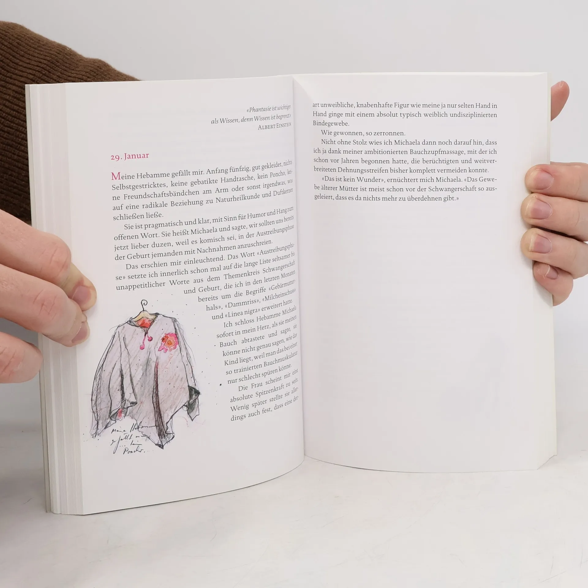Datum: 9. September, Schwangerschaftswoche: 6 + 6 Tage. Babys Herz schlägt, und ich kämpfe mit dem Gedanken, meinen Frauenarzt für die nächsten acht Monate ins Gästezimmer zu bitten. Ich stehe am Anfang einer Transformation: Ich werde Mutter. Plötzlich überkommen mich Hunger, Angst, Glück und Übelkeit in Wellen. Die Furcht, das Kind zu verlieren, ist ebenso stark wie die, es zu bekommen. Neulich habe ich geweint, als ich auf die Umstandsunterhose «Schluppi» stieß, die wie ein Zwei-Mann-Zelt aussieht. Was für ein Glück erwartet mich? Was für eine bedingungslose Liebe? Werde ich meinen Sohn lieben, wenn er einmal 130 Kilo wiegt und Fahrlehrer werden will? Oder meine Tochter, wenn sie sich mit achtzehn ein Tattoo stechen lässt und Weihnachten bei ihrem Freund feiert? Ich horche in mich hinein. Fühle ich mich schon wie zwei? Was denkt mein Kind von mir, wenn ich es vernachlässige? Werde ich eine schlechte Mutter sein? Eine hyperventilierende Glucke? Eine Rabenmutter, die ihr Baby im Autositz vergisst? Werde ich alles falsch machen? Oder nur fast alles? Die Erzählung ist aufrichtig, lustig und bewegend, ein Reisebegleiter in die Realität von Elternschaft, in der Sätze fallen wie: «Muttermund tut Wahrheit kund!» Ungelogen.