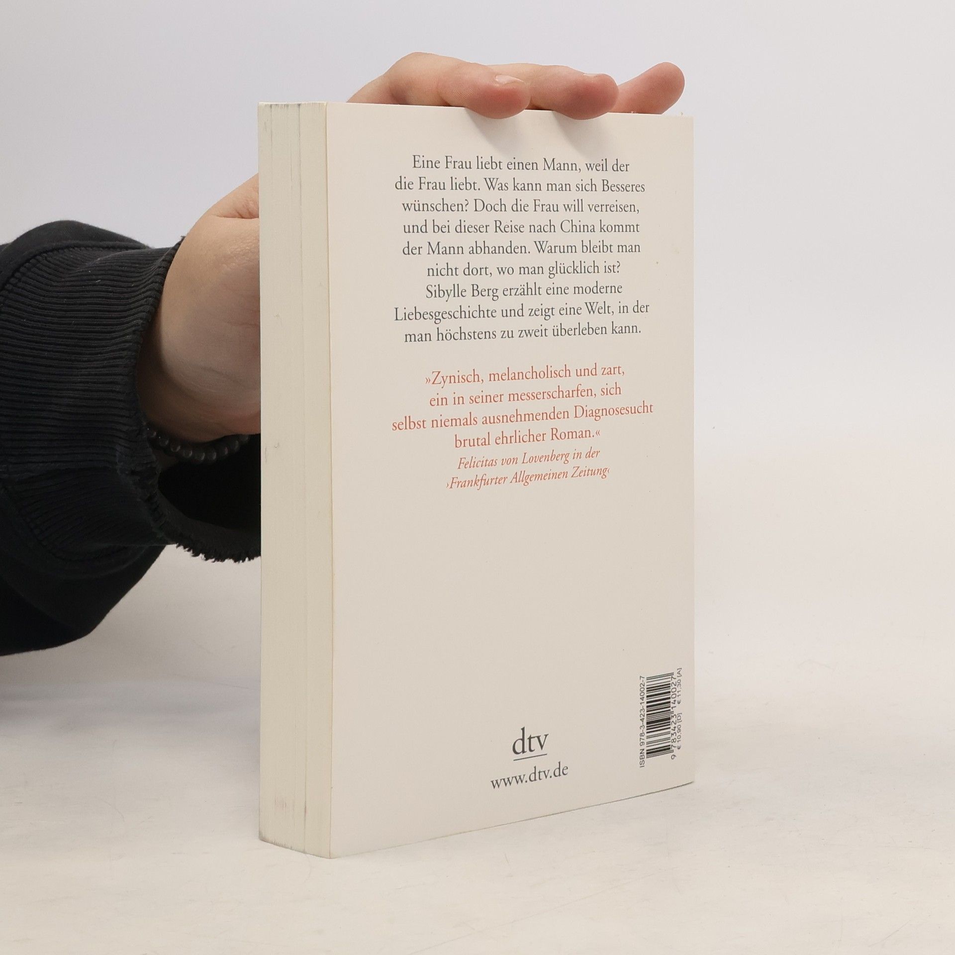 »Ein Plädoyer für mehr Gleichmut in der Liebe.« Kristina Maidt-Zinke in ›Die Zeit‹ Eine Frau liebt einen Mann, weil der die Frau liebt. Was kann man sich Besseres wünschen? Doch die Welt kennt kein Pardon: Auf einer Reise nach China kommt der Mann gleich wieder abhanden, und man fragt sich, ob das mit rechten Dingen zugeht. Warum sucht man nach Veränderung, wenn man das Glück gefunden hat? Warum bleibt man nicht dort, wo man glücklich ist? Sibylle Berg erzählt eine moderne Liebesgeschichte und zeigt mit so melancholischen wie bösartigen Bildern eine Welt, in der man höchstens zu zweit überleben kann.
