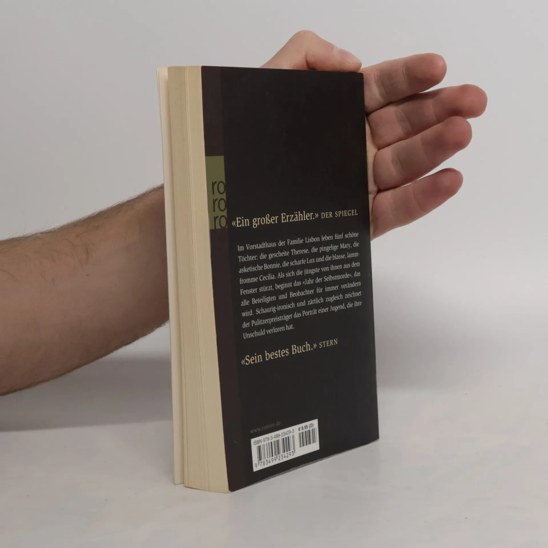 Im Vorstadthaus der Familie Lisbon leben fünf schöne Töchter: die gescheite Therese, die pingelige Mary, die asketische Bonnie, die scharfe Lux und die blasse, lammfromme Cecilia. Als sich die jüngste von ihnen aus dem Fenster stürzt, beginnt das „Jahr der Selbstmorde“, das alle Beteiligten und Beobachter für immer verändern wird. Schaurig-ironisch und zärtlich zugleich zeichnet der Pulitzer-Preisträger das Porträt einer Jugend, die ihre Unschuld verloren hat. „Sein bestes Buch“ (Stern)