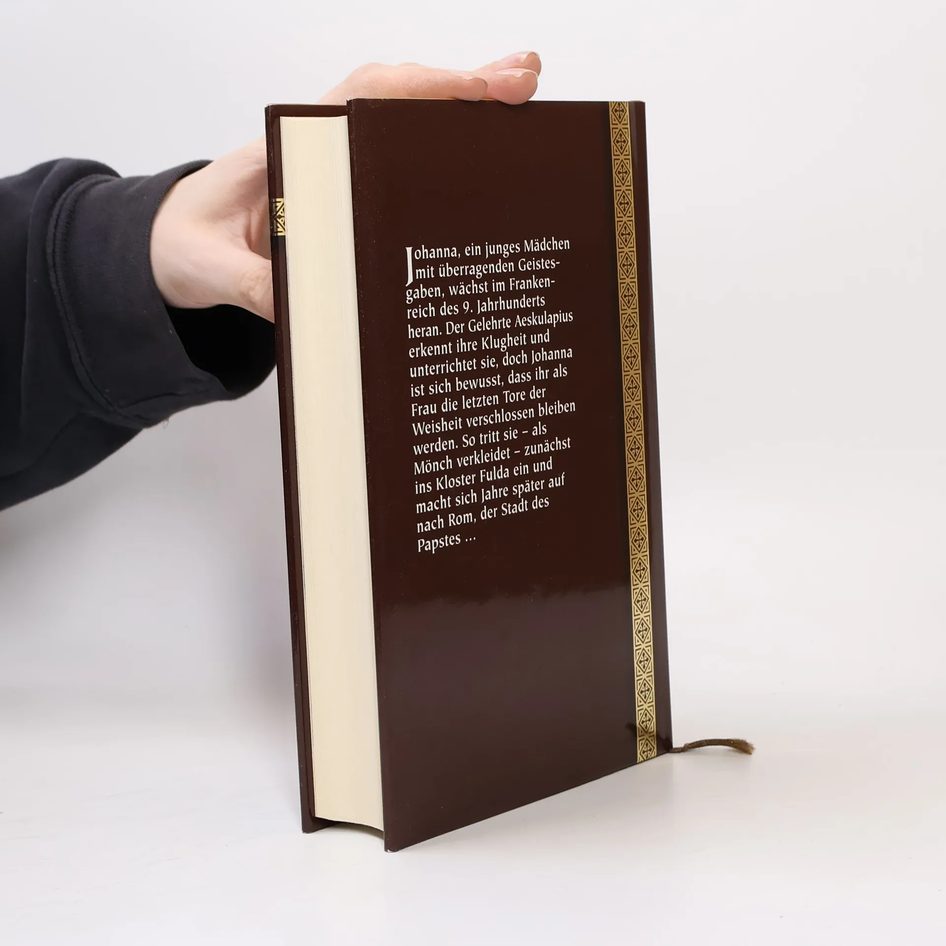Im bitterkalten Winter des Jahres 814 bringt die heidnische Frau des Dorfpriesters ein Mädchen zur Welt: Johanna. Sie wächst in einer Welt düsteren Aberglaubens auf, gegen den ihr Vater grausam zu Felde zieht; er läßt sogar die Hebamme des Ortes als Hexe verfolgen. Ein Mensch erkennt bei Johanna besondere Gaben: Aeskulapius, der Pädagoge aus dem fernen Byzanz, weist sie als einziges Mädchen in die Lehren der Philosophie und Logik ein. Doch beinahe wird Johanna ihr Wissensdurst zum Verhängnis. Nur der Ritter Gerold, ihr Freund und späterer Liebhaber, vermag sie vor dem grausamen Magister Odo zu bewahren. Nach einem verheerenden Feldzug der Normannen weiß sie endgültig: Frauen wie sie überleben in dieser Welt nicht. So geht sie als Mönch verkleidet ins Kloster Fulda. Als Medicus betritt sie Jahre später Rom, die Stadt des Papstes - wo die Wechselfälle des Schicksals sie schließlich selbst auf den heiligen Stuhl bringen.