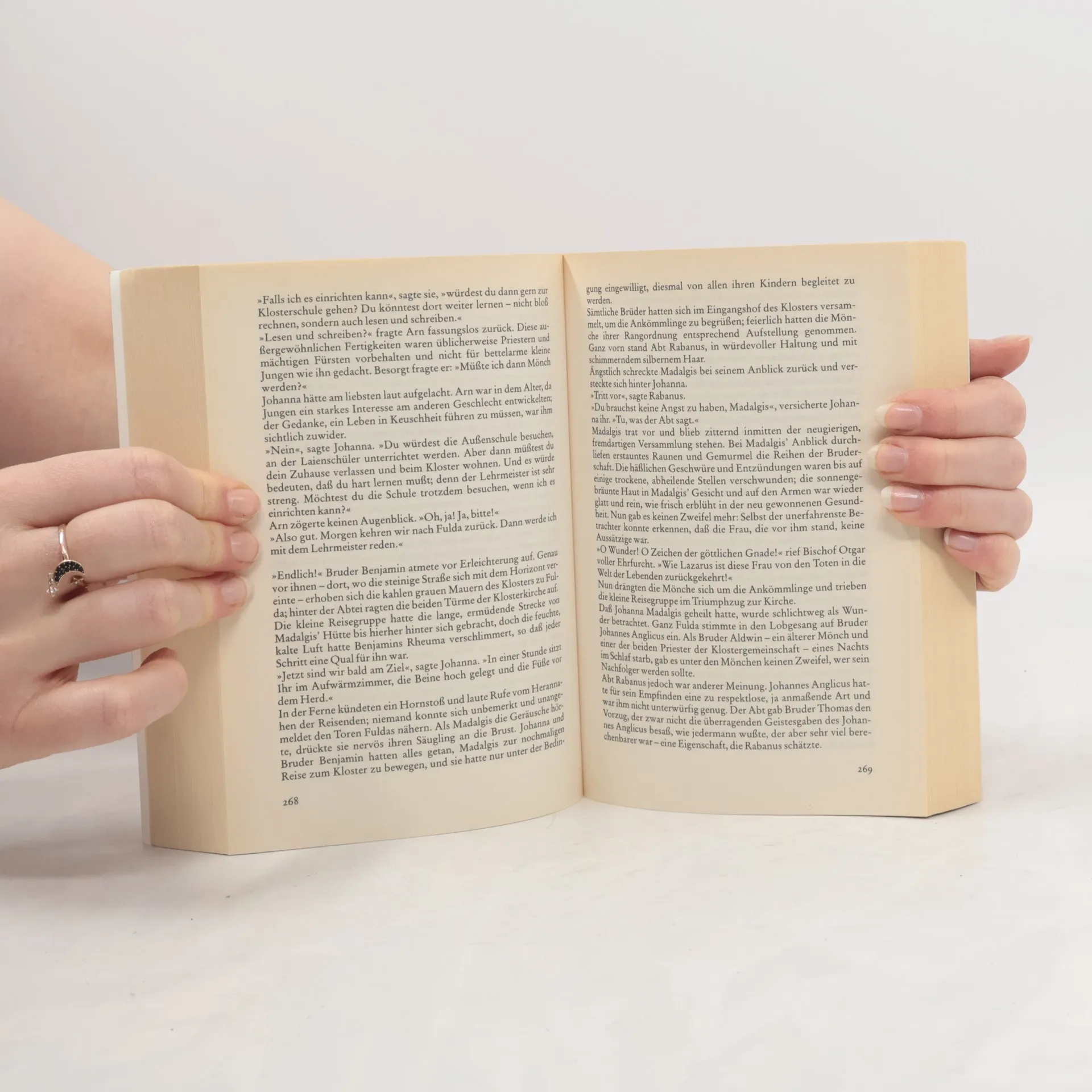 Im bitterkalten Winter des Jahres 814 bringt die heidnische Frau des Dorfpriesters ein Mädchen zur Welt: Johanna. Sie wächst in einer Welt düsteren Aberglaubens auf, gegen den ihr Vater grausam zu Felde zieht; er läßt sogar die Hebamme des Ortes als Hexe verfolgen. Ein Mensch erkennt bei Johanna besondere Gaben: Aeskulapius, der Pädagoge aus dem fernen Byzanz, weist sie als einziges Mädchen in die Lehren der Philosophie und Logik ein. Doch beinahe wird Johanna ihr Wissensdurst zum Verhängnis. Nur der Ritter Gerold, ihr Freund und späterer Liebhaber, vermag sie vor dem grausamen Magister Odo zu bewahren. Nach einem verheerenden Feldzug der Normannen weiß sie endgültig: Frauen wie sie überleben in dieser Welt nicht. So geht sie als Mönch verkleidet ins Kloster Fulda. Als Medicus betritt sie Jahre später Rom, die Stadt des Papstes - wo die Wechselfälle des Schicksals sie schließlich selbst auf den heiligen Stuhl bringen.