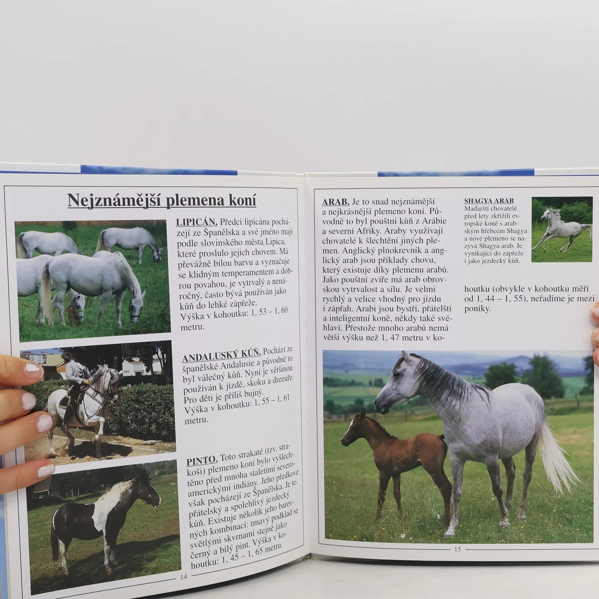 Bohatě ilustrovaná kniha přibližuje nejvýznamnější světová plemena koní a poníků. Fotografie koní a poníků se základním popisem jednotlivých plemen (jejich původ a vlastnosti). Svým rozsahem je určena hlavně dětským čtenářům.