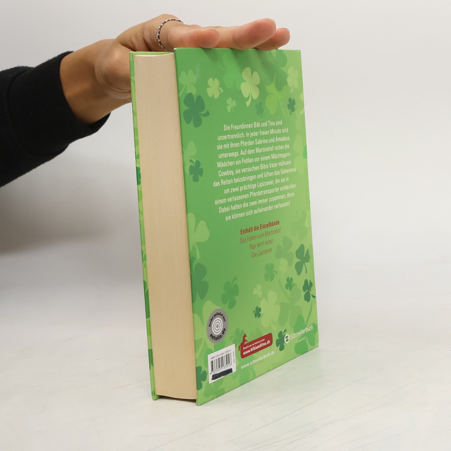 Die Freundinnen Bibi und Tina erleben mit ihren Pferden Sabrina und Amadeus spannende Abenteuer auf dem Martinshof. Sie retten ein Fohlen, versuchen Bibis Vater mühsam das Reiten beizubringen und lüften das Geheimnis um zwei Lipizzaner-Pferde. Dabei halten die beiden immer zusammen, denn sie können sich aufeinander verlassen! Enthält die Einzelbände: Das Fohlen vom Martinshof (Band 1) Papi lernt reiten (Band 3) Die Lipizzaner (Band 16)