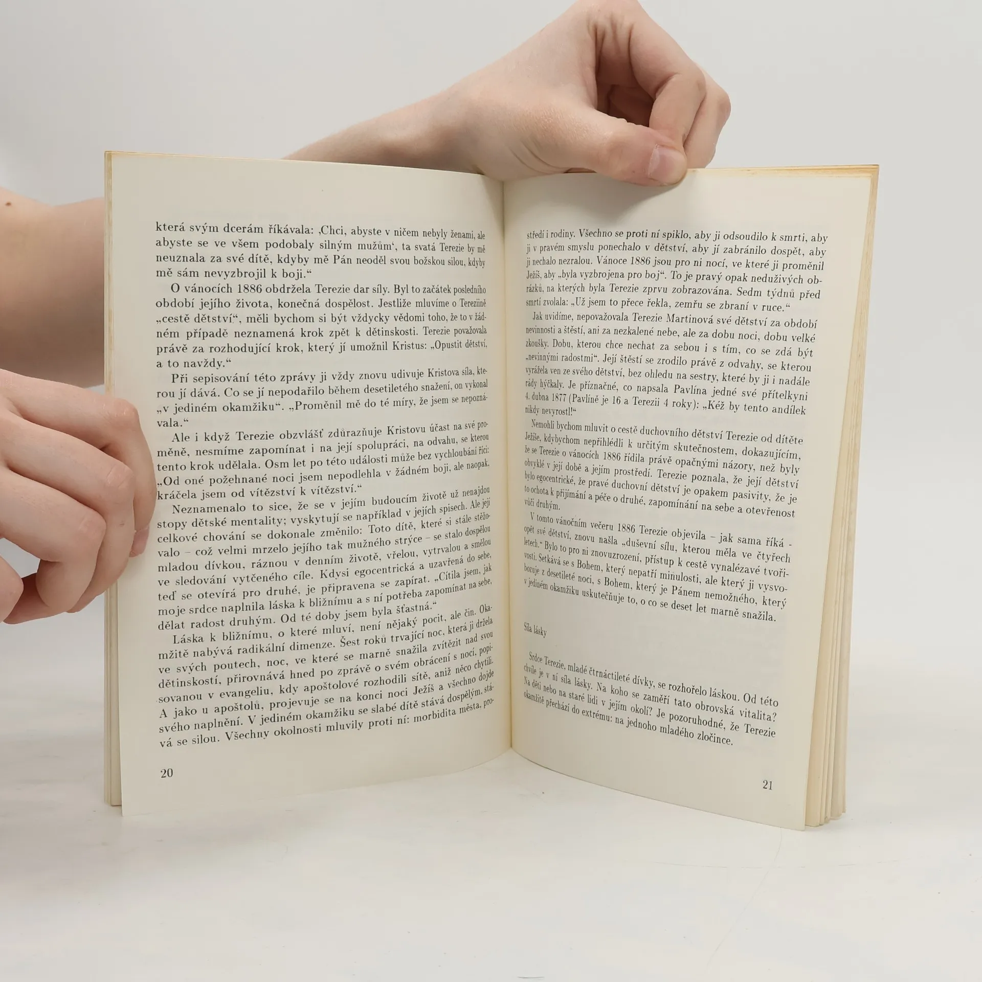 Krátká biografie svaté Terezie vychází ze studia jejich původních (jejími sestrami neretušovaných) zápisků. Ukazuje Terezii a svět kolem ní bez patosu a nánosu sladké zbožnosti. Vynikne tak velmi zřetelně podstata její spirituality ve své revoluční novosti.
