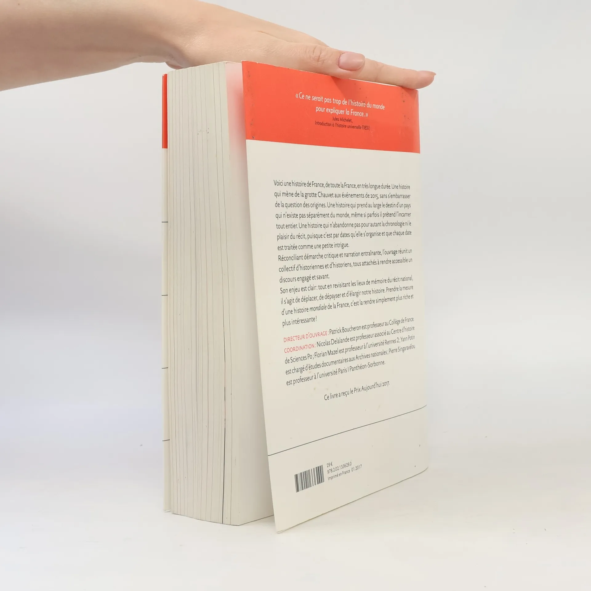 Ce livre propose une histoire de France qui s'étend de la grotte Chauvet aux événements de 2015, sans se perdre dans les questions d'origine ou d'identité. Il explore le destin d'un pays intrinsèquement lié au monde, tout en respectant la chronologie et en offrant un récit captivant, chaque date étant présentée comme une petite intrigue. Sous la direction de Patrick Boucheron, un collectif d'historiens et historiennes s'efforce de rendre accessible un discours à la fois engagé et savant. L'objectif est de proposer une histoire mondiale de la France, revisitant les lieux de mémoire du récit national pour les déplacer, les dépayser et les élargir, rendant ainsi l'histoire plus intéressante. Ce livre se distingue par sa richesse polyphonique et vise à apporter une note de joie face aux passions tristes de notre époque. Patrick Boucheron, professeur au Collège de France, dirige cet ouvrage, tandis que Nicolas Delalande, Florian Mazel, Yann Potin et Pierre Singaravélou, tous experts dans leurs domaines respectifs, assurent la coordination.