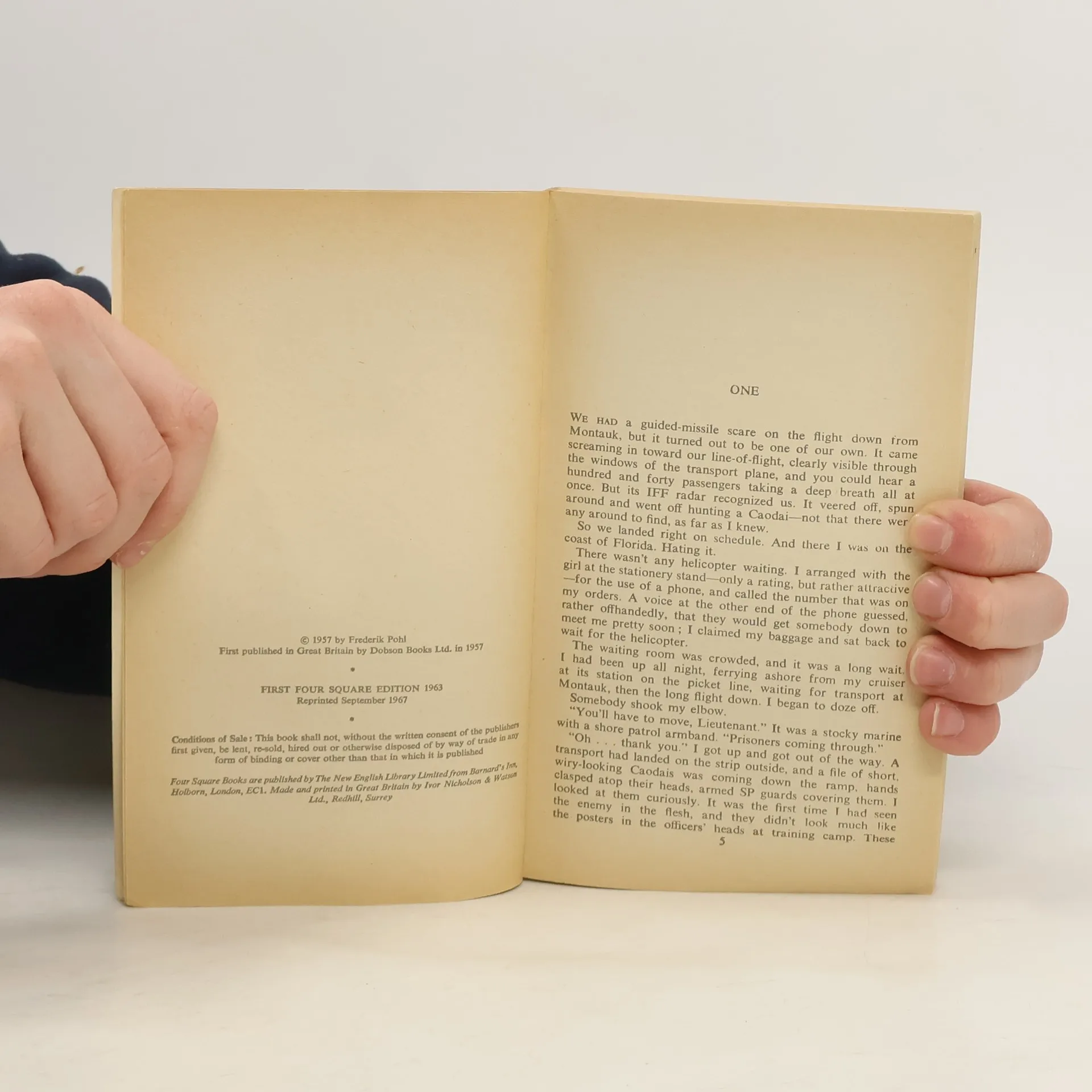 Ballantine paperback, 4th printing (1975) with Karl Swanson. The novel was first serialized in Galaxy Magazine in 1956, and published in book form the following year. Pohl has a reputation of one of SF's master satirists; this novel is about a world in the throes of a low-intensity global war, which appears to be an amplified representation of the Vietnam War (in which the U.S. was just becoming involved).