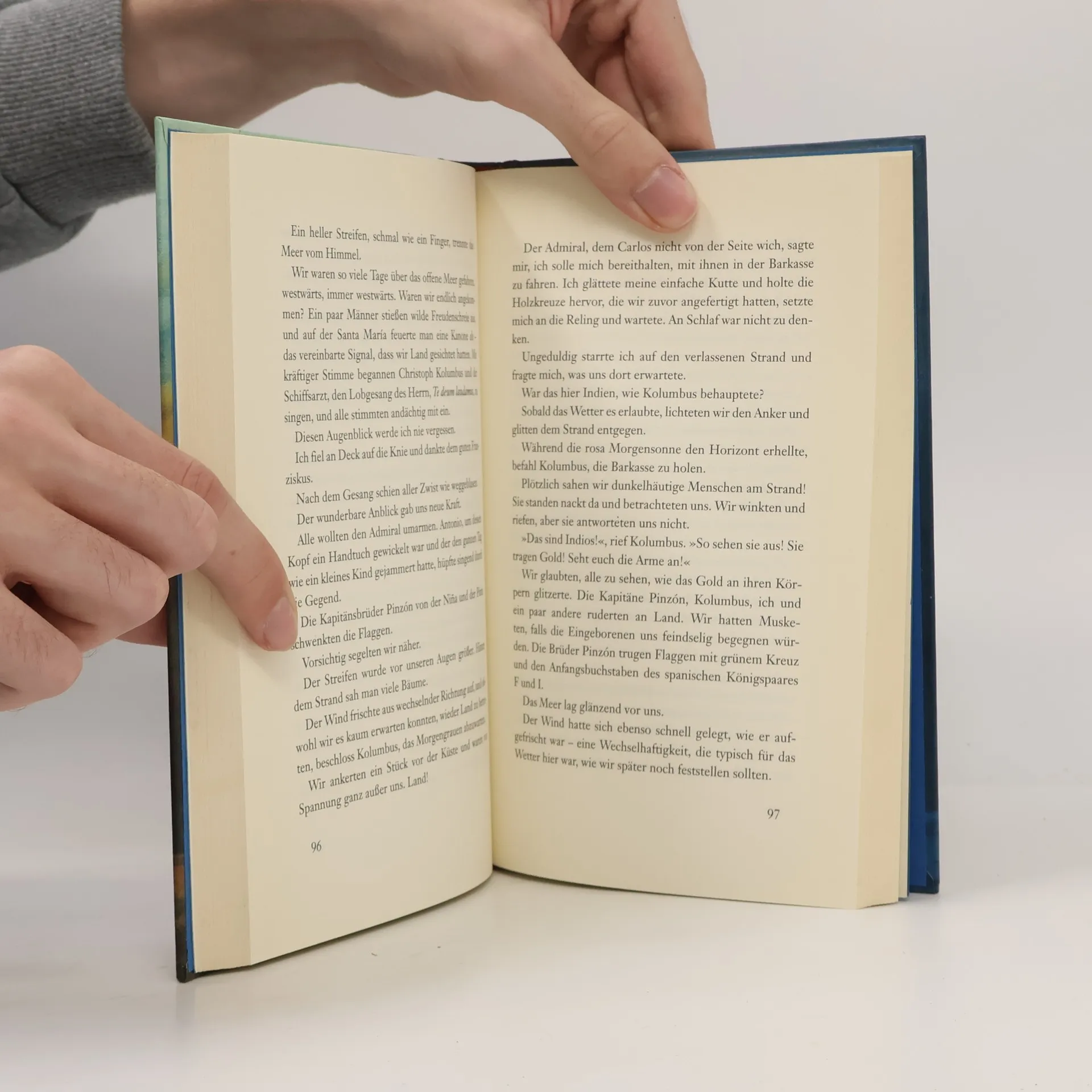 Der Mörder schlägt jedes Mal zu, wenn das Schiff vor Anker geht. Der junge Novize Pedro ist mit an Bord der Santa María, als Christoph Kolumbus 1492 den Seeweg nach Indien sucht. Doch nicht nur die Verbrechen überschatten das wagemutige Abenteuer zur See: Die Stimmung an Bord ist gereizt, die Mannschaft beginnt, den Glauben an Kolumbus? verwegenes Vorhaben zu verlieren. Längst hätten sie Indien erreichen müssen! Aber Pedro hält an Kolumbus fest. Und er ist entschlossen, die Verbrechen aufzuklären. Nacht für Nacht sitzt Pedro im Schein einer Kerze über seiner Pergamentrolle und dokumentiert alle Ereignisse des Tages. Die Route der Santa María, ungünstige Strömungen, die Stimmung an Bord, Gefahren, Hoffnungen ? und die Hinweise auf den Mörder. Pedro ist ihm auf der Spur. Er glaubt, ihn zu kennen. Doch Pedro verdächtigt den Falschen.