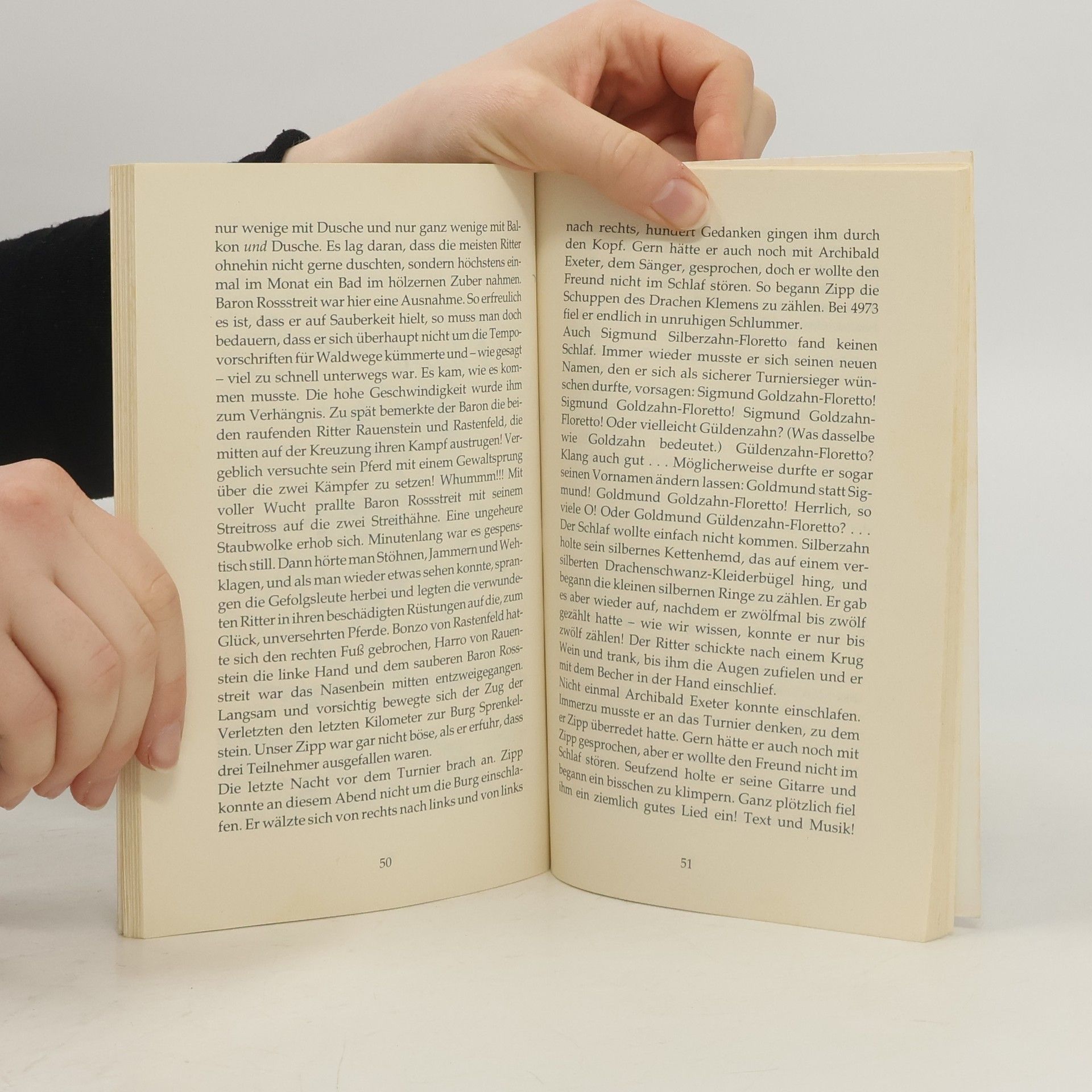 Das Buch spielt zur Zeit, als Ritter noch gegen Drachen kämpften. Drachenzähne als Schmuck oder etwa Drachenfleisch als Leckerbissen waren sehr begehrt. Um die Tiere vor dem Aussterben zu bewahren, hat der listenreiche Minnesänger Archibald Exeter eine Idee: Der friedliebende, kurzsichtige Ritter Ottokar von Zipp muss in der Rüstung seines Urgroßvaters und mit einem stämmigen Ackergaul als Streitross zum Turnier antreten ...