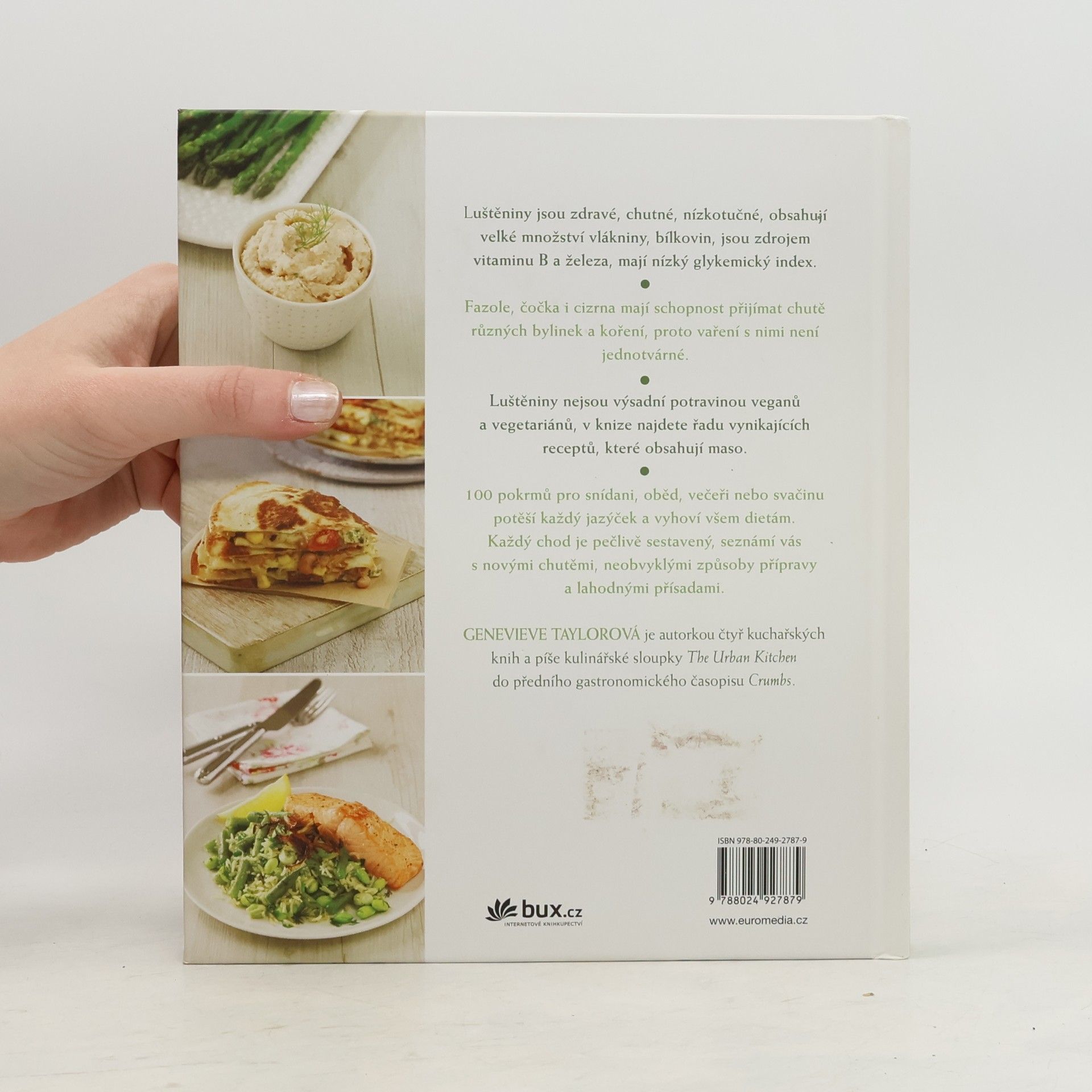 Luštěniny jsou zdravé, chutné, nízkotučné, obsahují velké množství vlákniny, mají nízký glykemický index, a přesto je málo konzumujeme. 100 nových pokrmů pro snídani, oběd, večeři nebo svačinu potěší každý jazýček a vyhoví všem dietám. Jídla jsou pečlivě sestavená, neobvykle připravená s lahodnými přísadami. Fazole, čočka i cizrna mají schopnost přijímat chutě bylinek a koření, proto vaření s nimi není jednotvárné. Luštěniny nejsou výsadní potravinou veganů a vegetariánů, v knize najdete řadu vynikajících receptů, které obsahují maso.
