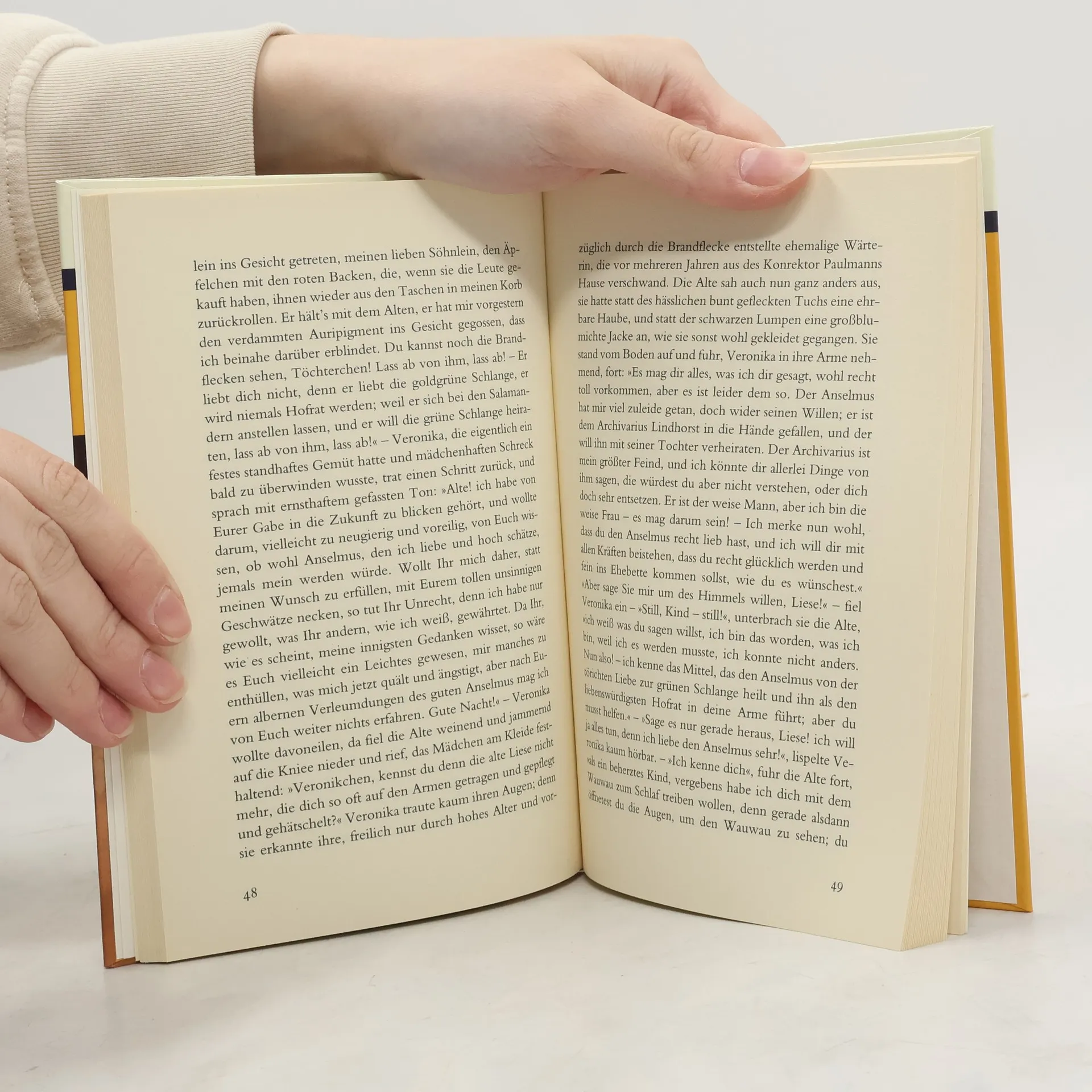 Der Student Anselmus ist hin- und hergerissen zwischen den Idealen bürgerlicher Bildung und den Sehnsüchten der Poesie. Er begegnet dem Archivar Lindhorst, der ihn in ein phantastisches Reich voller wundersamer Ereignisse und Empfindungen führt. Doch diese zauberhafte Welt ist bedroht: Das Symbol verheißenen Glücks, ein goldener Topf, wird gestohlen, und nur unter Aufbietung aller Kräfte gelingt es Lindhorst, ihn zurückzugewinnen und Anselmus von den Fesseln bürgerlicher Enge zu befreien. Hoffmanns betörend märchenhafte Novelle über die Macht der Poesie ist ein Glanzstück der romantischen Literatur.