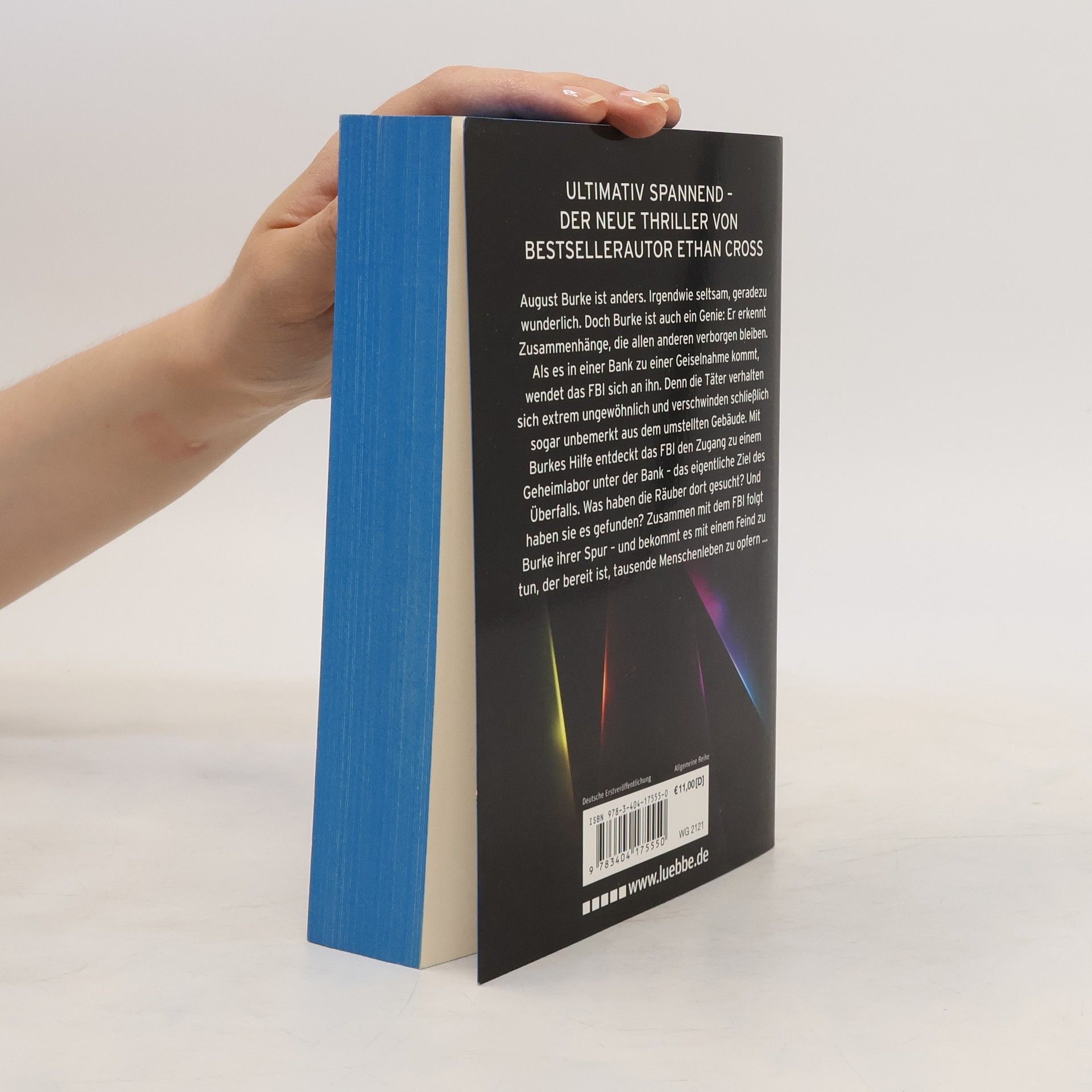 Eine neue rasante Thriller-Serie von Bestsellerautor Ethan Cross, dem Autor der Shepherd-Thriller August Burke ist anders. Irgendwie seltsam, geradezu wunderlich. Doch Burke ist auch ein Genie: Er erkennt Zusammenhänge, die allen anderen verborgen bleiben. Als es in einer Bank zu einer Geiselnahme kommt, wendet das FBI sich an ihn. Denn die Täter verhalten sich extrem ungewöhnlich und verschwinden schließlich sogar unbemerkt aus dem umstellten Gebäude. Mit Burkes Hilfe entdeckt das FBI den Zugang zu einem Geheimlabor unter der Bank - das eigentliche Ziel des Überfalls. Was haben die Räuber dort gesucht? Und haben sie es gefunden? Zusammen mit Special Agent Carter folgt Burke ihrer Spur - und bekommt es mit einem Feind zu tun, der bereit ist, tausende Menschenleben zu opfern.