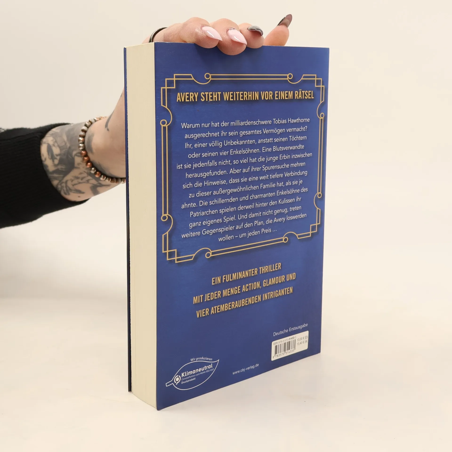 Intrigen, Reichtümer und Romantik – die Fortsetzung des New-York-Times-Bestsellers! Avery steht weiterhin vor einem Rätsel: Warum nur hat der milliardenschwere Tobias Hawthorne ausgerechnet ihr sein gesamtes Vermögen vermacht? Ihr, einer völlig Unbekannten anstatt seinen Töchtern oder seinen vier Enkelsöhnen.Eine Blutsverwandte ist sie jedenfalls nicht, so viel hat die junge Erbin inzwischen herausgefunden. Aber auf ihrer Spurensuche mehren sich die Hinweise, dass sie eine weit tiefere Verbindung zu dieser außergewöhnlichen Familie hat, als sie je ahnte. Die schillernden und charmanten Enkelsöhne des Patriarchen spielen derweil hinter den Kulissen ihr ganz eigenes Spiel. Und damit nicht genug, treten weitere Gegenspieler auf den Plan, die Avery loswerden wollen – um jeden Preis … Ein atemberaubender Thriller mit jeder Menge Action, Glamour und vier atemberaubenden Intriganten Die Inheritance-Reihe: The Inheritance Games (Band 1)The Inheritance Games - Das Spiel geht weiter (Band 2)The Inheritance Games - Der letzte Schachzug (Band 3)