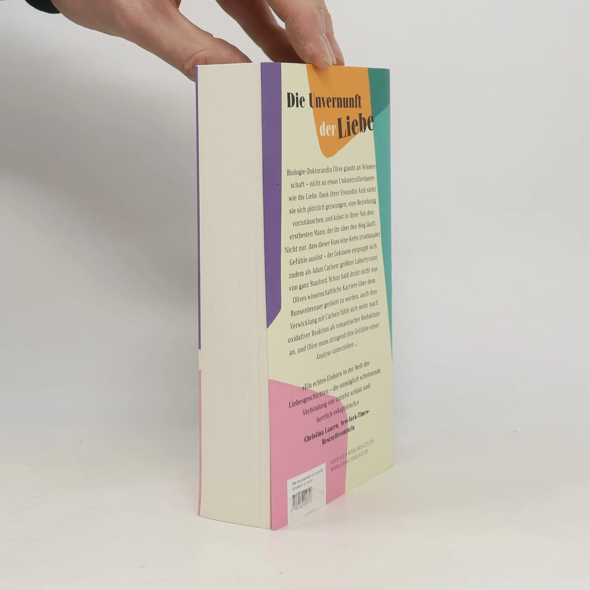 Die Unvernunft der Liebe Biologie-Doktorandin Olive glaubt an Wissenschaft – nicht an etwas Unkontrollierbares wie die Liebe. Dank ihrer Freundin Anh sieht sie sich plötzlich gezwungen, eine Beziehung vorzutäuschen, und küsst in ihrer Not den erstbesten Mann, der ihr über den Weg läuft. Nicht nur, dass dieser Kuss eine Kette irrationaler Gefühle auslöst – der Geküsste entpuppt sich zudem als Adam Carlsen: größter Labortyrann von ganz Stanford. Schon bald droht nicht nur Olives wissenschaftliche Karriere über dem Bunsenbrenner geröstet zu werden, auch ihre Verwicklung mit Carlsen fühlt sich mehr nach oxidativer Reaktion als romantischer Reduktion an, und Olive muss dringend ihre Gefühle einer Analyse unterziehen … “Ein echtes Einhorn in der Welt der Liebesgeschichten – die unmöglich scheinende Verbindung von zutiefst schlau und herrlich eskapistisch.” Christina Lauren, New-York-Times-Bestsellerautorin