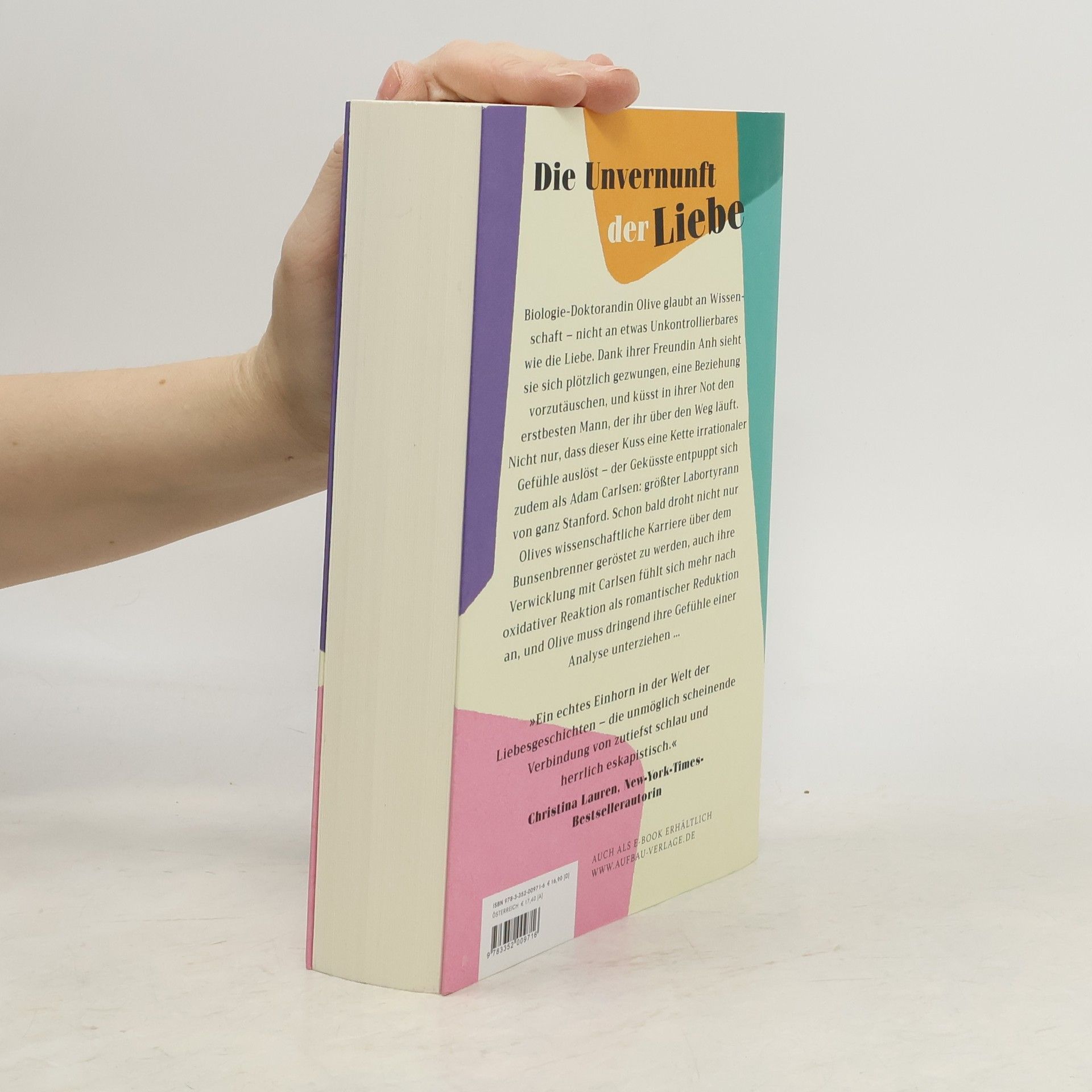 Die Unvernunft der Liebe Biologie-Doktorandin Olive glaubt an Wissenschaft – nicht an etwas Unkontrollierbares wie die Liebe. Dank ihrer Freundin Anh sieht sie sich plötzlich gezwungen, eine Beziehung vorzutäuschen, und küsst in ihrer Not den erstbesten Mann, der ihr über den Weg läuft. Nicht nur, dass dieser Kuss eine Kette irrationaler Gefühle auslöst – der Geküsste entpuppt sich zudem als Adam Carlsen: größter Labortyrann von ganz Stanford. Schon bald droht nicht nur Olives wissenschaftliche Karriere über dem Bunsenbrenner geröstet zu werden, auch ihre Verwicklung mit Carlsen fühlt sich mehr nach oxidativer Reaktion als romantischer Reduktion an, und Olive muss dringend ihre Gefühle einer Analyse unterziehen … “Ein echtes Einhorn in der Welt der Liebesgeschichten – die unmöglich scheinende Verbindung von zutiefst schlau und herrlich eskapistisch.” Christina Lauren, New-York-Times-Bestsellerautorin