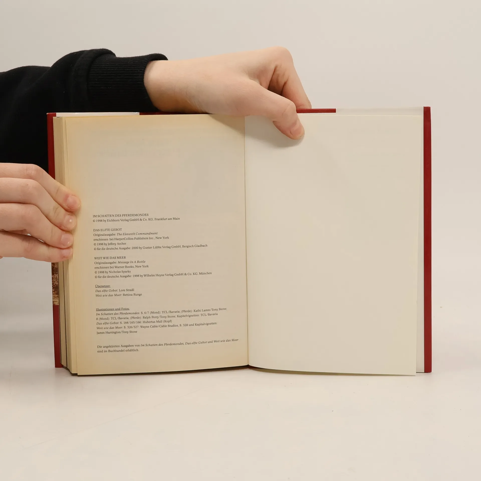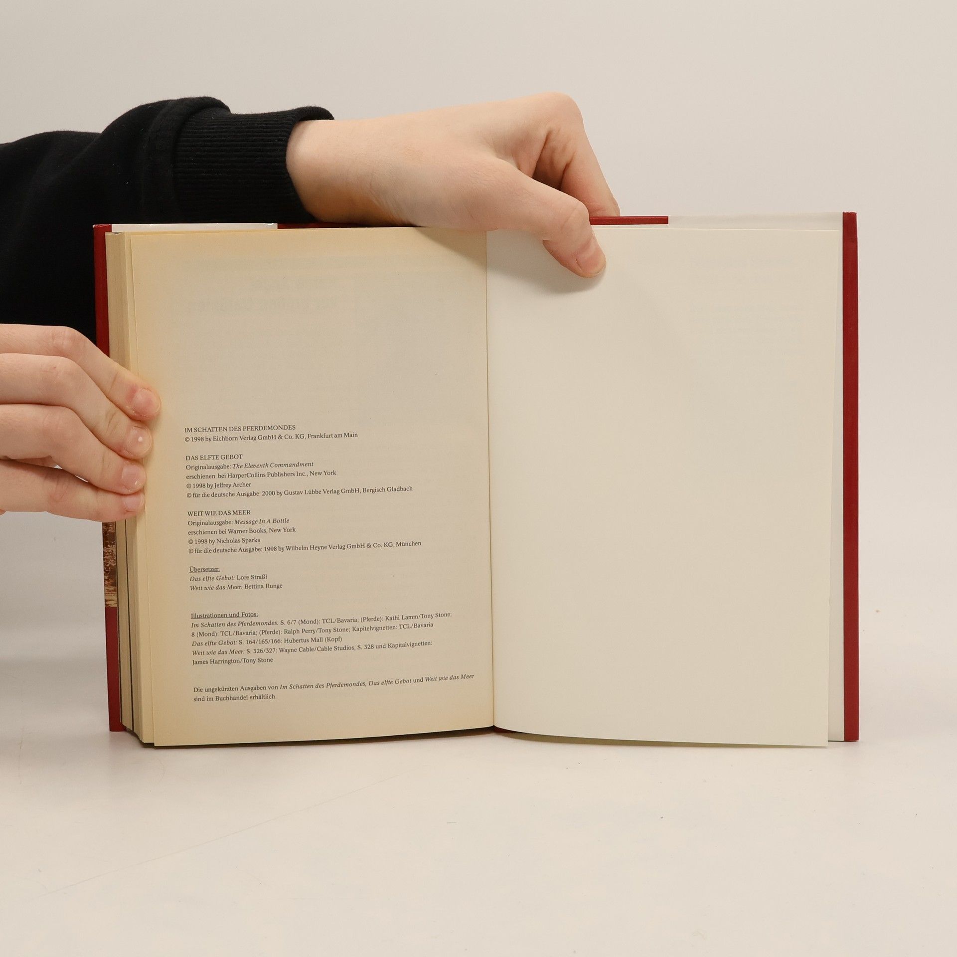 Reader’s Digest Auswahlbücher. Im Schatten des Pferdemondes. Das Elfte Gebot. Weit wie das Meer, Evita Wolff, Jeffrey Archer, Nicholas Sparks