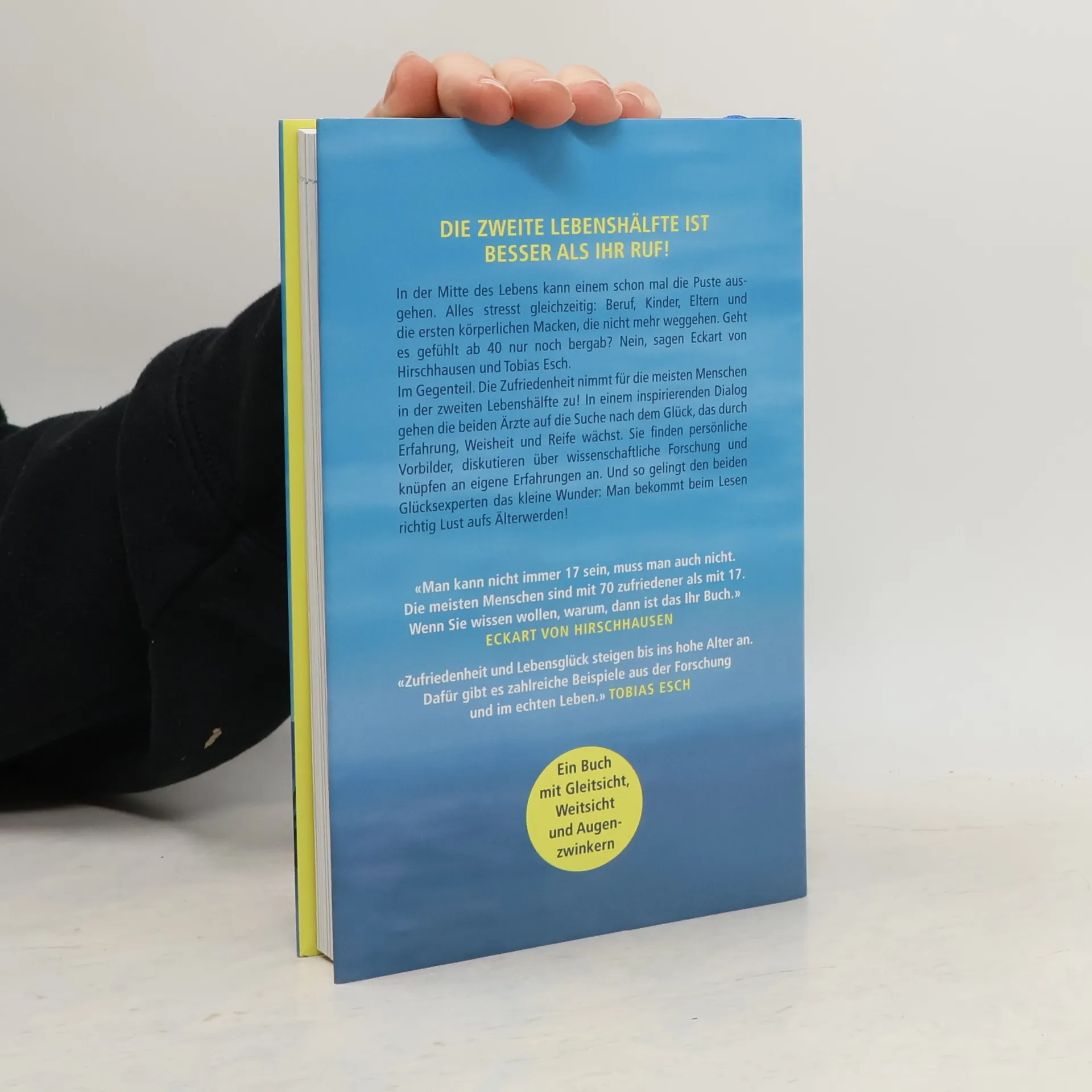 Eckart von Hirschhausen und Tobias Esch stellen im gemeinsamen Gespräch die vorherrschende Meinung über das Älterwerden auf den Kopf Könnte es sein, dass die Zufriedenheit nach der Jugend und der stressigen Phase in der Mitte des Lebens nicht schwindet, sondern sogar wächst? Eckart von Hirschhausen und Tobias Esch, die beiden Experten für das Glücklichsein, tun sich zusammen um zu klä Worauf darf man sich mitten im Leben freuen? In ihrem Dialog prüfen sie die These, dass das Lebensglück bis ins hohe Alter ansteigen kann. Und so entsteht ein Gespräch, bei dem beide – der Fernsehmoderator und der Gesundheitsforscher – persönliche Vorbilder benennen, Anknüpfungspunkte zu eigenen Erfahrungen geben und, trotz mancher Tücken, Lust machen auf das Älterwerden. Hören Sie Eckart von Hirschhausen und Tobias Esch im Gespräch über das Altern – gerade so, als würden Sie mit am Tisch sitzen.(1CD, ca. 1h 11) .