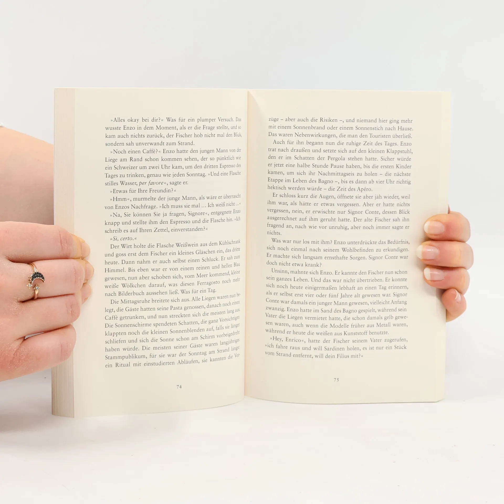 Bestsellerautor Alexander Oetker erzählt von der Magie der Liebe im sommerlichen Italien Es ist der 15. August, Ferragosto, ganz Italien urlaubt, und der Strandabschnitt von Strandwärter Enzo ist so voll wie nie. Hingebungsvoll kocht er für seine Gäste Spaghetti Carbonara, und zwar erstmals nach dem Rezept seiner verstorbenen Frau. Er ist nicht der Einzige, der sich an diesem zauberhaften Sommertag für etwas Neues öffnet – unter seinen Augen vollzieht sich ein kleines Wunder: Vier ganz unterschiedliche Paare finden im Laufe der Stunden in seinem Bagno zusammen, sehen sich zum ersten Mal richtig an, oder erkennen, wie sehr sie sich selbst im Wege standen und finden die Liebe wieder.