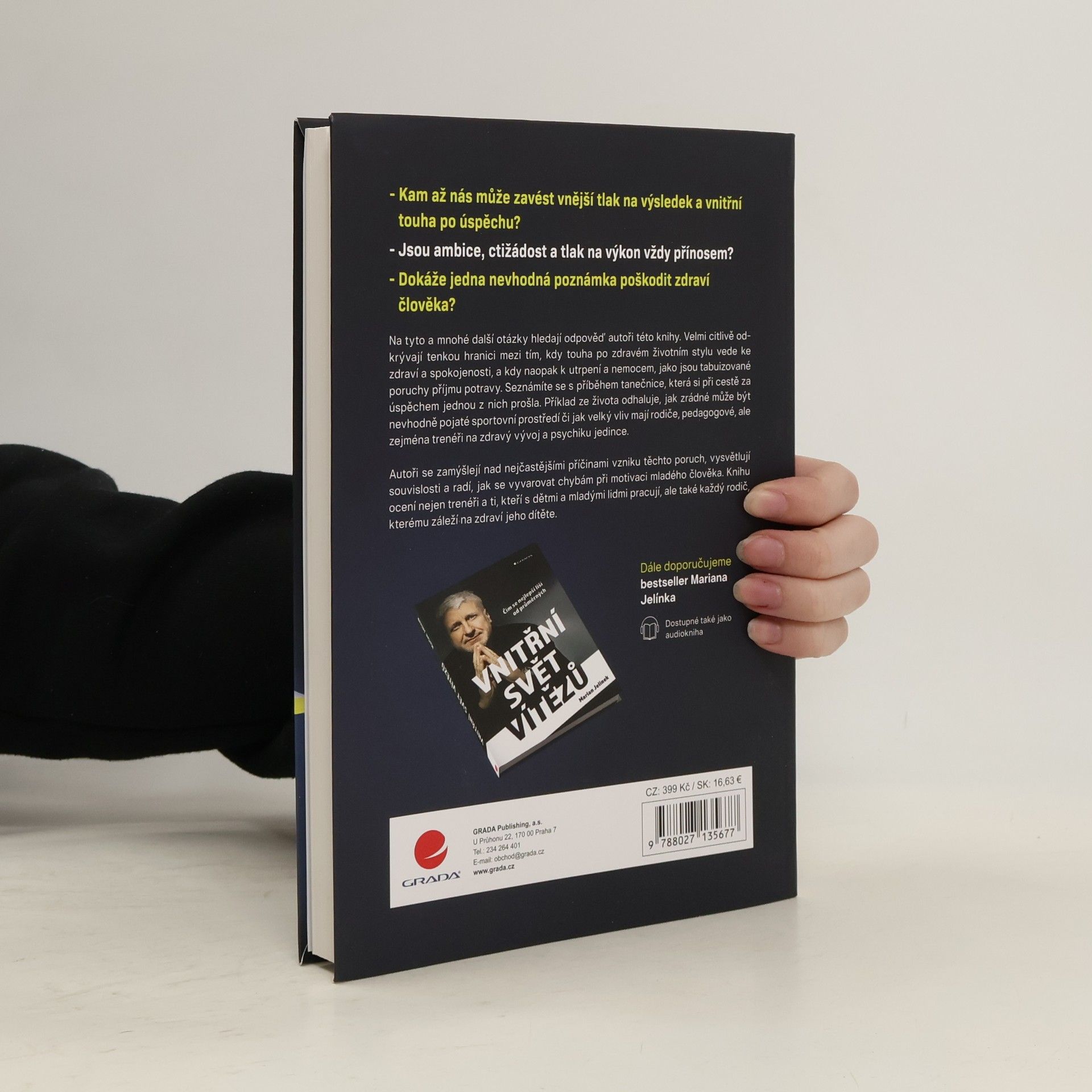 Kam až nás může zavést vnější tlak na výsledek a vnitřní touha po úspěchu? Jsou ambice, ctižádost a tlak na výkon vždy přínosem? Dokáže jedna nevhodná poznámka poškodit zdraví člověka?Na tyto a mnohé další otázky hledají odpověď autoři této knihy. Velmi citlivě odkrývají tenkou hranici mezi tím, kdy touha po zdravém životním stylu vede ke zdraví a spokojenosti, a kdy naopak k utrpení a nemocem, jako jsou tabuizované poruchy příjmu potravy. Seznámíte se s příběhem tanečnice, která si při cestě za úspěchem jednou z nich prošla. Příklad ze života odhaluje, jak zrádné může být nevhodné pojaté sportovní prostředí či jak velký vliv mají rodiče, pedagogové, ale zejména trenéři na zdravý vývoj a psychiku jedince.Autoři se zamýšlejí nad nejčastějšími příčinami vzniku těchto poruch, vysvětlují souvislosti a radí, jak se vyvarovat chybám při motivaci mladého člověka. Knihu ocení nejen trenéři a ti, kteří s dětmi a mladými lidmi pracují, ale také každý rodič, kterému záleží na zdraví jeho dítěte.