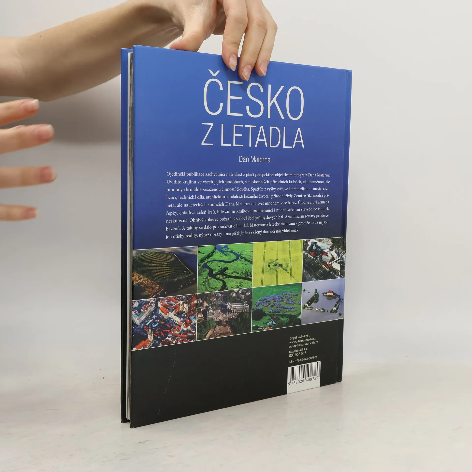 Ojedinělá publikace zachycující naši vlast z ptačí perspektivy objektivem fotografa Dana Materny. Uvidíte krajinu ve všech jejich podobách, v neskonalých přírodních krásách, zkulturněnou, ale mnohdy i brutálně zasaženou činností člověka. Spatříte z výšky na svět, ve kterém žijeme - města, civilizaci, technická díla, architekturu, události běžného života i přírodní živly. Zemi se říká modrá planeta, ale na leteckých snímcích Dana Materny má svět mnohem více barev. Útočně žlutá armáda řepky, chladivá zeleň lesů, bílé zimní krajkoví, proměňující i nudné satelitní stavebnice v dotek neskutečna. Ohnivý koberec požárů. Ocelová šeď průmyslových hal. Azur bizarní sestavy prodejce bazénů. A tak by se dalo pokračovat dál a dál. Maternovo letecké malování - protože to už nejsou jen otisky reality, nýbrž obrazy - má ještě jeden vzácný dar: učí nás vidět jinak.