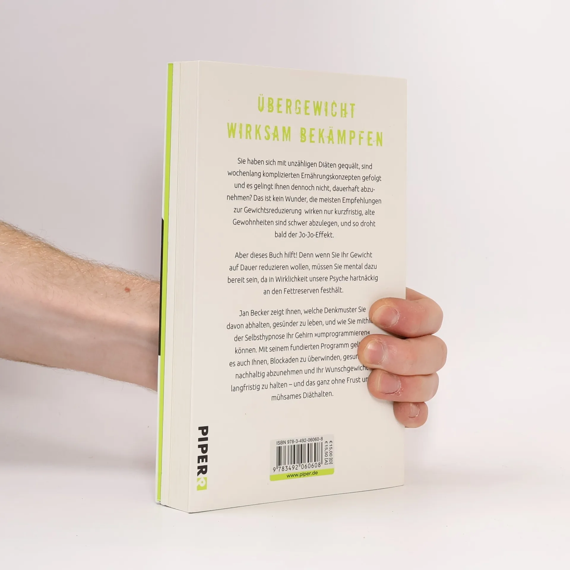 Für Abnehmwillige gibt es immer neue Wunderdiäten und komplizierte Ernährungskonzepte – leider ist der Erfolg hier oft nur kurzfristig, die alten Gewohnheiten sind schwer abzulegen, und so droht bald der Jo-Jo-Effekt. Doch wer sein Gewicht dauerhaft reduzieren will, muss mental dazu bereit sein, denn in Wirklichkeit hält unsere Psyche hartnäckig an den Fettreserven fest. Jan Becker zeigt, welche Denkmuster uns davon abhalten, gesünder zu leben, und wie wir mithilfe der Selbsthypnose unser Gehirn umprogrammieren können. Mit seinem fundierten Programm gelingt es, Blockaden zu überwinden, nachhaltig abzunehmen und sein Wunschgewicht dauerhaft zu halten – und das ganz ohne Frust und mühsames Diäthalten.