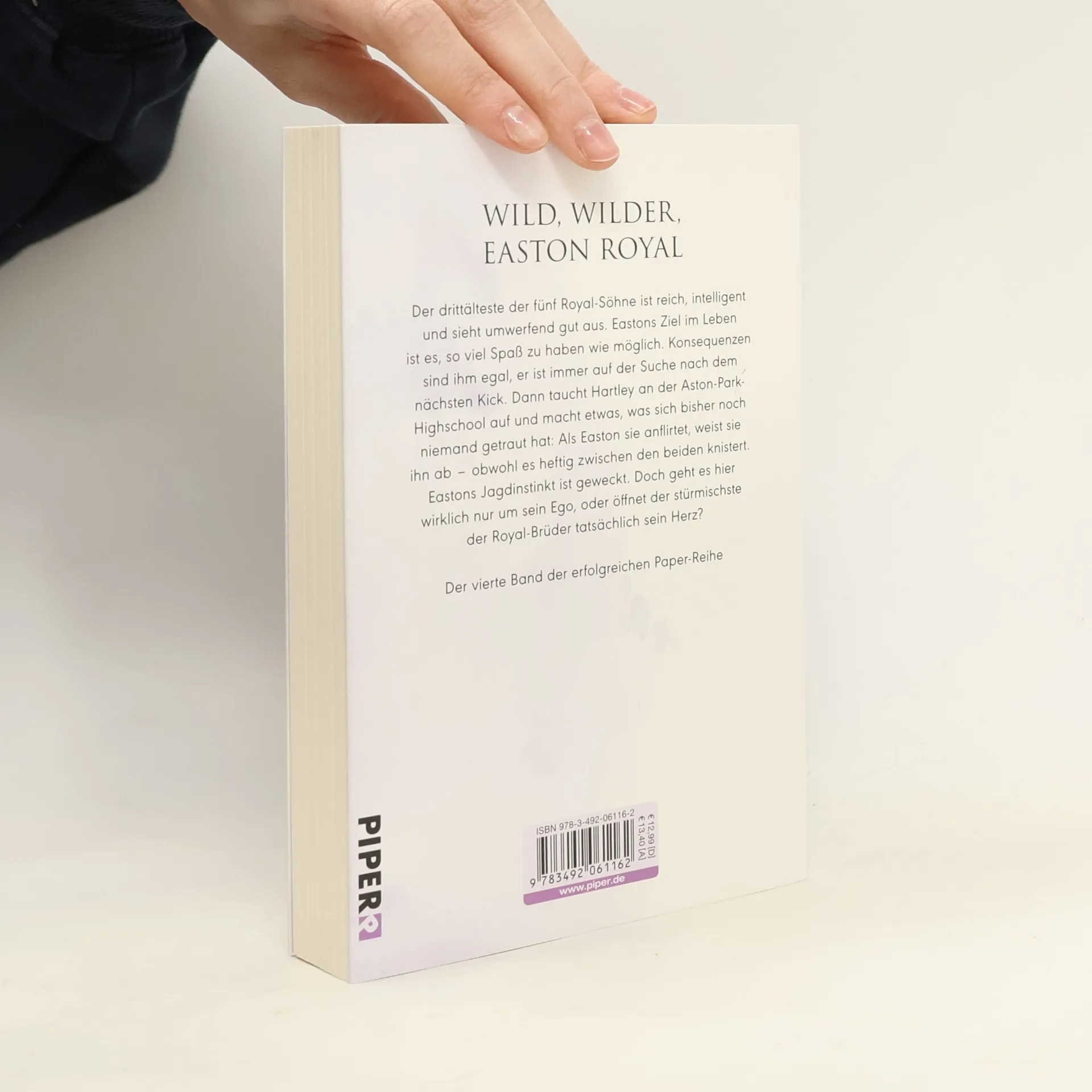 Die packende Geschichte um den wildesten der Royal-Brüder verspricht jede Menge Emotionen und Leidenschaft. Im vierten Band der beliebten Reihe muss Easton lernen, seine Macho-Fassade abzulegen und Hartley von seinen wahren Gefühlen zu überzeugen. Als der unzähmbare Bad Boy, der alles bekommt, was er will, auf die schlagfertige Hartley trifft, wird er aus der Bahn geworfen. Ihre anfängliche Ablehnung bringt ihn um den Verstand. Hartley hat ihren eigenen Kopf und zeigt sich skeptisch gegenüber Eastons Avancen. Ist es wirklich Liebe oder nur der Reiz der Eroberung? Nachdem die ersten Bücher um Ella Harper und ihre Liebe zu Reed kreisten, wird in diesem Band endlich die Geschichte von Easton erzählt, dem Bad Boy der Royals. Leser, die die fünf Brüder kennen, wissen, dass es aufregend, sexy und überraschend wird. Die New Adult-Romance von Erin Watt, einem Pseudonym zweier Bestsellerautorinnen, begeistert mit warmherzigen und gefühlvollen Erzählungen. Die »Paper«-Reihe ist ihr erstes gemeinsames Projekt und bietet Liebesromane mit Suchtpotenzial. Nach den Vorgängern verspricht der vierte Band vor allem stürmische Leidenschaft. Die Liebesgeschichte zwischen Easton und Hartley wird die Leser nicht mehr loslassen, ideal für Fans von romantisch-aufregenden Büchern.