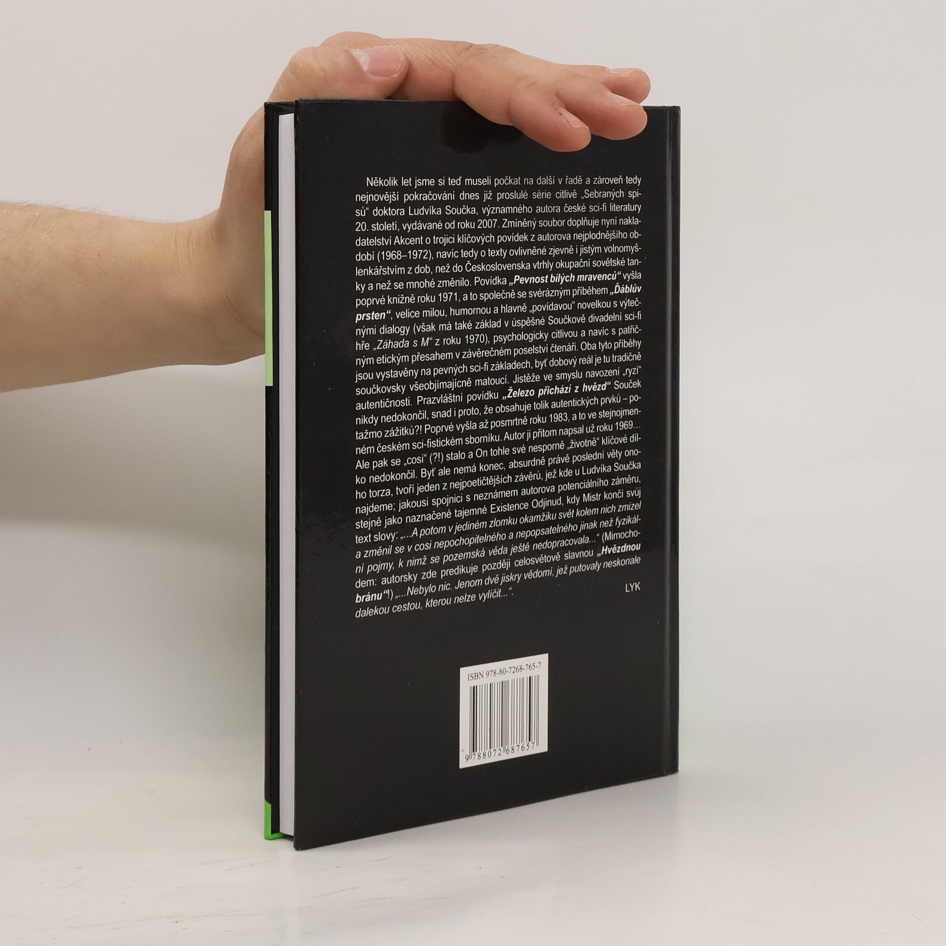 Po několika letech čekání přichází další pokračování proslulé série „Sebraných spisů“ doktora Ludvíka Součka, významného českého sci-fi autora 20. století. Nakladatelství Akcent nyní doplňuje soubor o tři klíčové povídky z autorova nejplodnějšího období (1968–1972), ovlivněné volnomyšlenkářstvím doby před okupací Československa sovětskými tanky. Povídka „Pevnost bílých mravenců“ byla poprvé vydána v roce 1971 spolu s příběhem „Ďáblův prsten“, humornou novelou s výtečnými dialogy, která vychází z úspěšné Součkovy divadelní sci-fi hry „Záhada s M“ z roku 1970. Oba příběhy mají pevné sci-fi základy, přičemž dobový kontext je typicky součkovsky matoucí, což přispívá k autentičnosti. Povídka „Železo přichází z hvězd“ zůstala nedokončena, což může souviset s množstvím autentických prvků. Poprvé byla vydána až posmrtně v roce 1983, přestože byla napsána již v roce 1969. Absurdně, její nedokončené závěrečné věty tvoří jeden z nejpoetičtějších konců v Součkově díle, naznačující tajemství a Existence Odjinud. Mistr končí slovy o zmizení světa a cestě vědomí, což předjímá pozdější celosvětově známou „Hvězdnou bránu“.