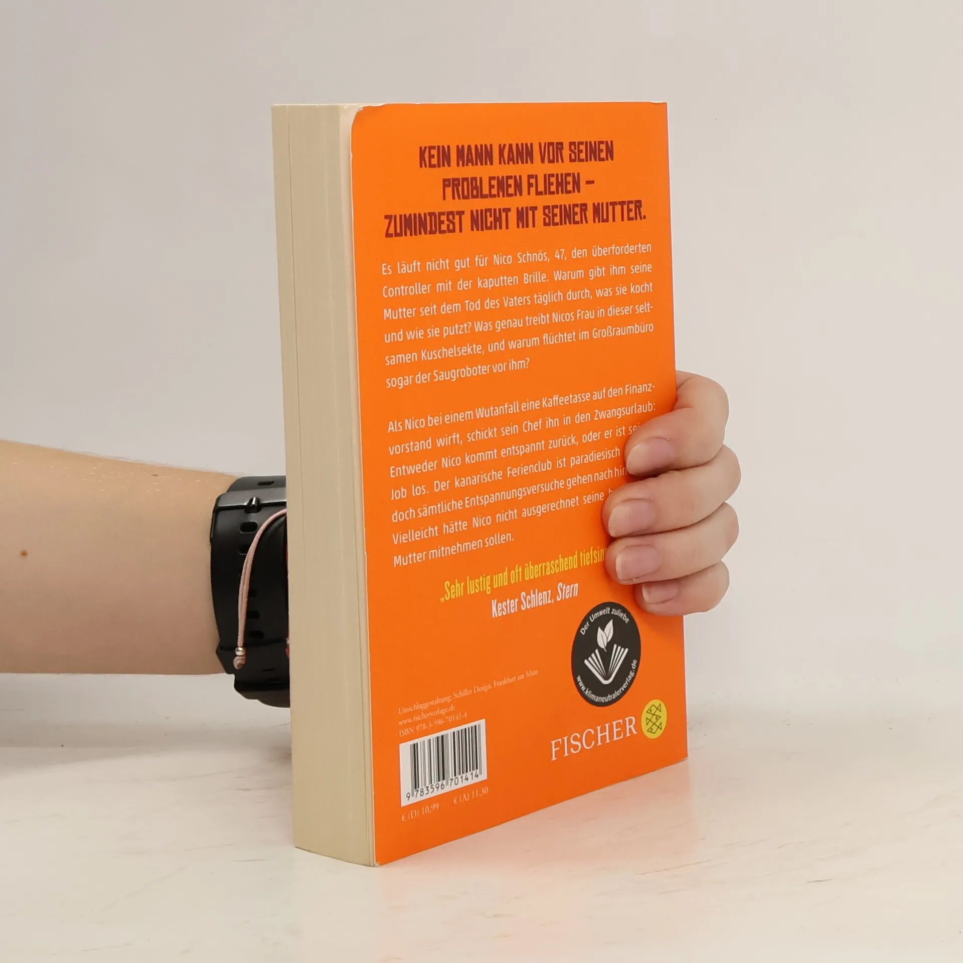 Kein Mann kann vor seinen Problemen fliehen – zumindest nicht mit seiner Mutter. Es läuft nicht gut für Nico Schnös, 47, den überforderten Controller mit der kaputten Brille. Warum gibt ihm seine Mutter seit dem Tod des Vaters täglich durch, was sie kocht und wie sie putzt? Was genau treibt Nicos Frau in dieser seltsamen Kuschelsekte, und warum flüchtet im Großraumbüro sogar der Saugroboter vor ihm? Als er bei einem Wutanfall eine Kaffeetasse auf den Finanzvorstand wirft, schickt sein Chef ihn in den Zwangsurlaub: Entweder Nico kommt entspannt zurück, oder er ist seinen Job los. Der kanarische Ferienclub ist paradiesisch schön – doch sämtliche Entspannungsversuche gehen nach hinten los. Vielleicht hätte Nico nicht ausgerechnet seine hyperaktive Mutter mitnehmen sollen: »Eine Zimmerkarte reicht, mein Sohn und ich machen eh alles zusammen!« Bald schon ahnt Nico: Paradies und Hölle können sehr nah beieinander liegen. Der Roman für alle, die schon mal mit ihren Eltern im Urlaub waren.