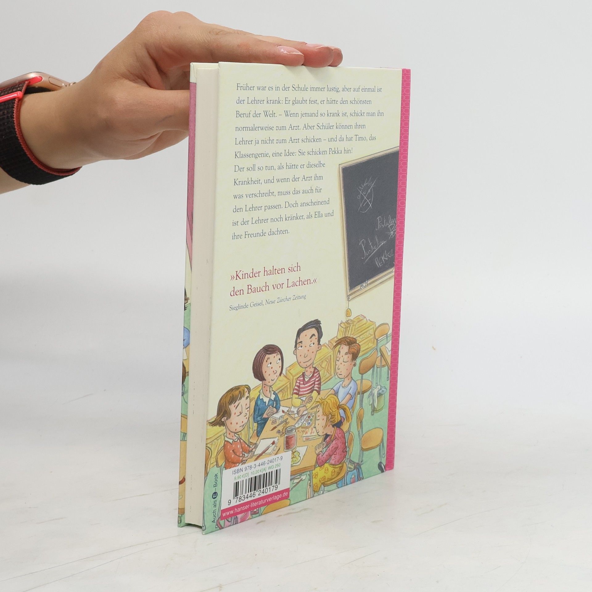 Bisher war es in der Schule immer lustig, aber auf einmal stimmt was nicht mit dem Lehrer: Er behauptet fest, er habe den schönsten Beruf der Welt. Er ist wohl krank, vermuten die Schüler. Doch sie können ihn ja nicht einfach zum Arzt schicken. Also schicken sie Pekka hin! Der soll so tun, als hätte er dieselbe Krankheit, und wenn der Arzt ihm was verschreibt, muss das auch für den Lehrer passen. Nur schickt der Arzt Pekka ins Krankenhaus. Und wie kommen Ella und ihre Freunde jetzt da hinein? Timo hat eine Spitzenidee: Sie malen sich falsche Pusteln. So kommen sie zwar schnell ins Krankenhaus, nur sind nach dem Waschen noch immer Pusteln da: richtige! Das neue, turbulente Kinderbuch des Erfolgsautors aus Finnland.