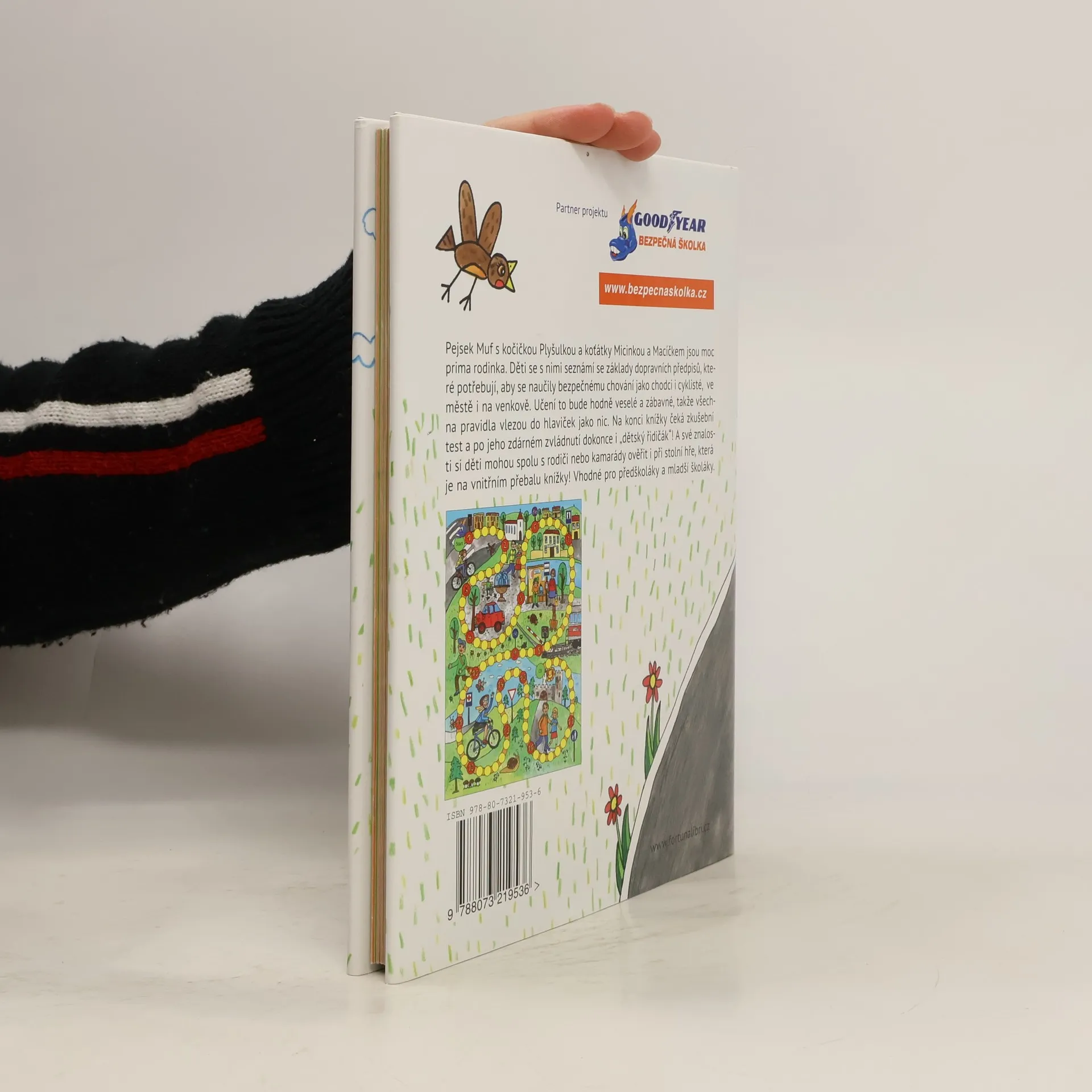 Vhodné pro předškoláky a mladší školáky. Pejsek Muf s kočičkou Plyšulkou a koťátky Micinkou a Macíčkem jsou moc prima rodinka. Děti se s nimi seznámí se základy dopravních předpisů, které potřebují, aby se naučily bezpečnému chování jako chodci i cyklisté, ve městě i na venkově. Učení to bude hodně veselé a zábavné, takže všechna pravidla vlezou do hlaviček jako nic. Na konci knížky čeká zkušební test a po jeho zdárném zvládnutí dokonce i „dětský řidičák“! A své znalosti si děti mohou spolu s rodiči nebo kamarády ověřit i při stolní hře, která je na vnitřním přebalu knížky!