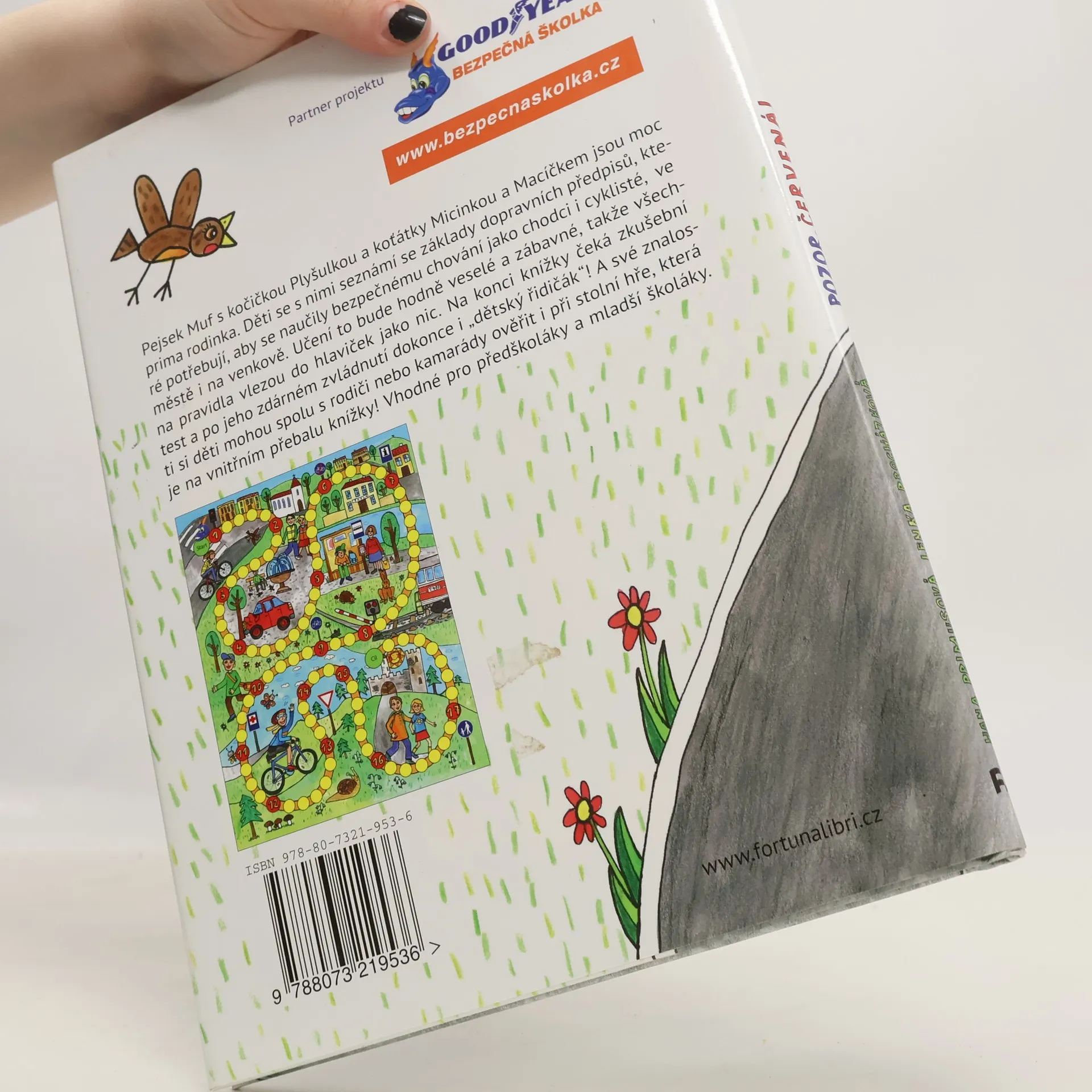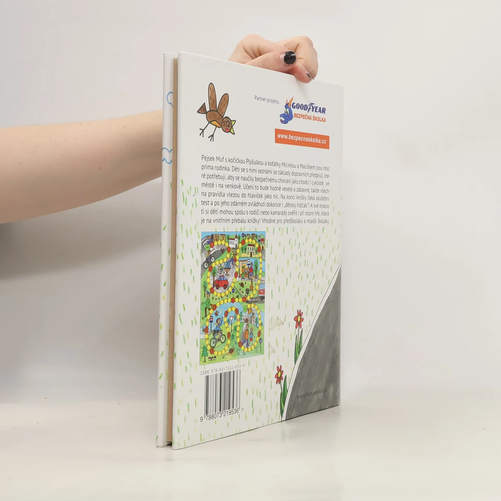 Vhodné pro předškoláky a mladší školáky. Pejsek Muf s kočičkou Plyšulkou a koťátky Micinkou a Macíčkem jsou moc prima rodinka. Děti se s nimi seznámí se základy dopravních předpisů, které potřebují, aby se naučily bezpečnému chování jako chodci i cyklisté, ve městě i na venkově. Učení to bude hodně veselé a zábavné, takže všechna pravidla vlezou do hlaviček jako nic. Na konci knížky čeká zkušební test a po jeho zdárném zvládnutí dokonce i „dětský řidičák“! A své znalosti si děti mohou spolu s rodiči nebo kamarády ověřit i při stolní hře, která je na vnitřním přebalu knížky!