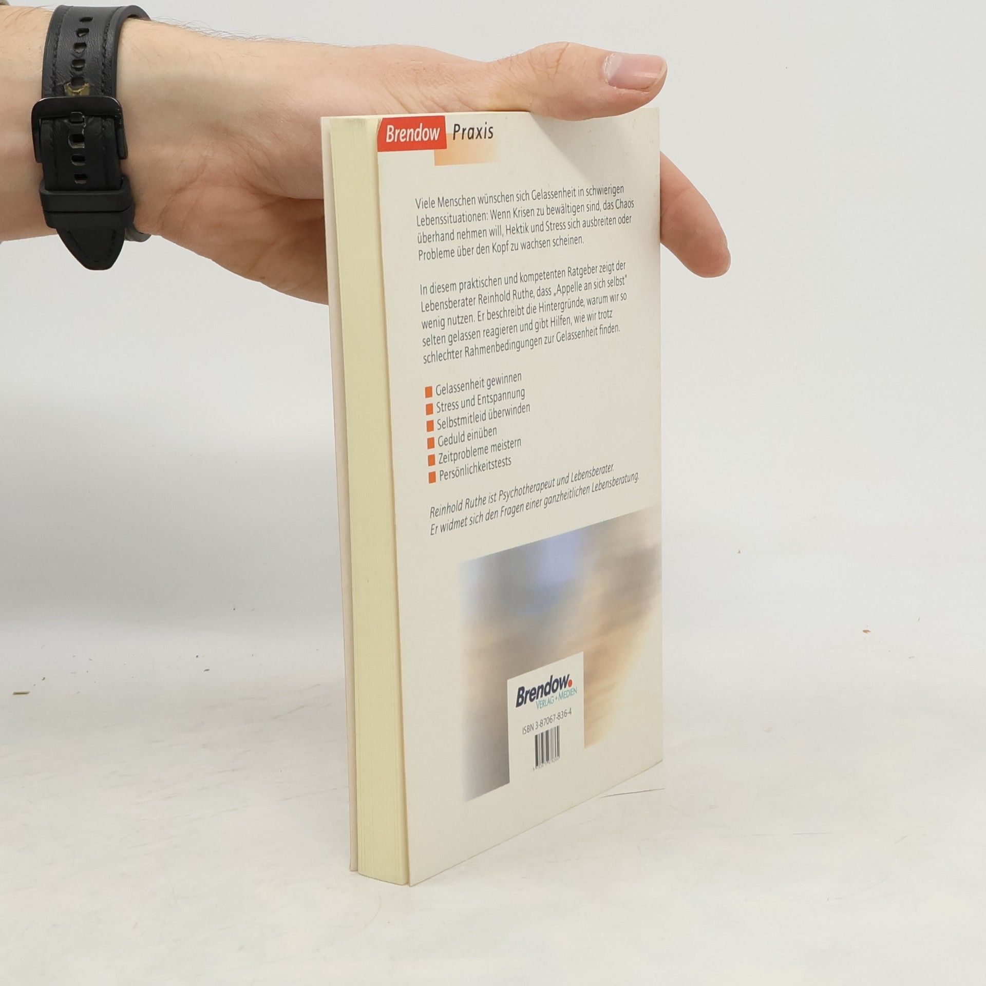 Viele Menschen wünschen sich Gelassenheit in schwierigen Lebenssituationen, bei der Bewältigung von Krisen, im Umgang mit nervenden Mitmenschen, im Blick auf eine unsichere Zukunft. Doch das Leben wird von anderen Faktoren geprägt: Angst, Stress, Nervosität, Hektik und Leistungsdruck - wie kann man da noch gelassen sein? Der Bestseller-Autor und Lebensberater Reinhold Ruthe weiß, dass 'Appelle an sich selbst' nicht viel nutzen. Deshalb beschreibt er in diesem Buch die Hintergründe, warum wir so selten gelassen reagieren und gibt konkret umsetzbare Hilfestellungen, wie man trotz unveränderter Rahmenbedingungen mehr Gelassenheit gewinnen kann.