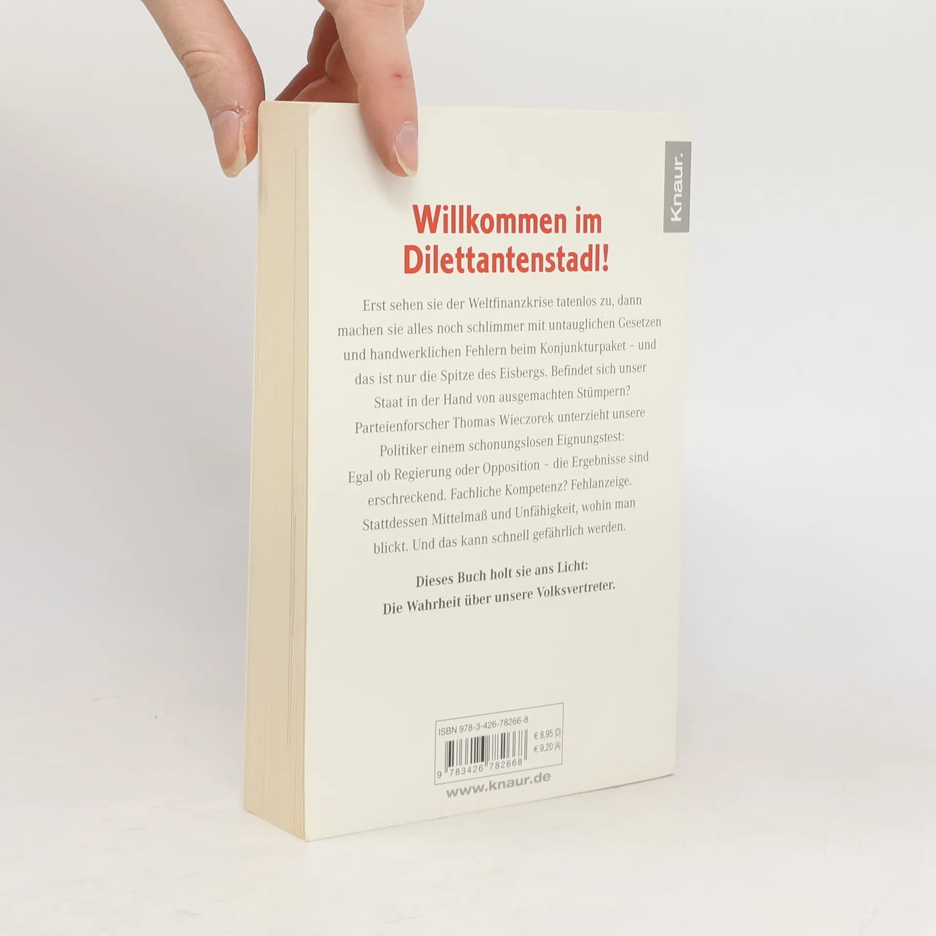 Thomas Wieczorek unterzieht unsere Politiker einem schonungslosen Eignungstest. Fazit: Kompetenz Fehlanzeige. Kernbereiche des Staates befinden sich in der Hand von unfähigen Laien und Dilettanten. Dieses Buch nennt sie beim Namen: von Merkel bis Lafontaine und von Müntefering bis Westerwelle.