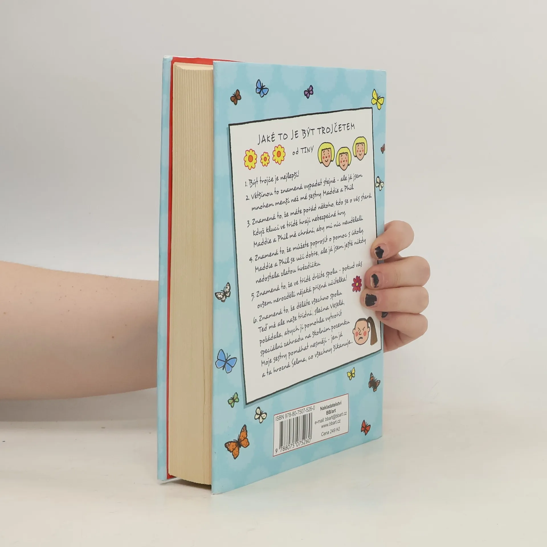 Tina, jako trojče, se od svých sester Phil a Maddie liší téměř ve všem, včetně toho, že v ničem není tak dobrá jako ony. Naštěstí se o Tinu starají a pomáhají jí, dokud je nová učitelka, slečna Veselá, neoddělí. Tina je zděšena, když ji posadí vedle zlé Selmy, ale brzy zjistí, že Selma je mnohem zajímavější, než se zdá. Být trojče znamená mít někoho, kdo se o vás stará, a Tina se spoléhá na Maddie a Phil, aby ji chránily před nebezpečnými hrami kluků ve třídě. Také to znamená, že může žádat o pomoc s úkoly, protože její sestry se učí dobře, zatímco ona nikdy nezískala zlatou hvězdičku. Když je však oddělena od svých sester, musí se postavit novým výzvám. Učitelka ji požádá, aby pomohla vytvořit speciální zahradu na školním pozemku, a to pouze s Selmou, která je známá svým šikanováním. Tento příběh o přátelství, důvěře a o tom, jak je někdy těžké být sám sebou, je určen čtenářkám ve věku od sedmi do devíti let a přináší poselství o překonávání překážek a objevování vlastních sil.