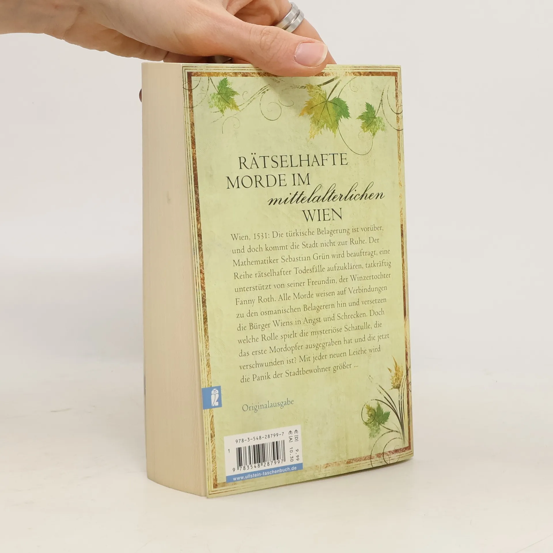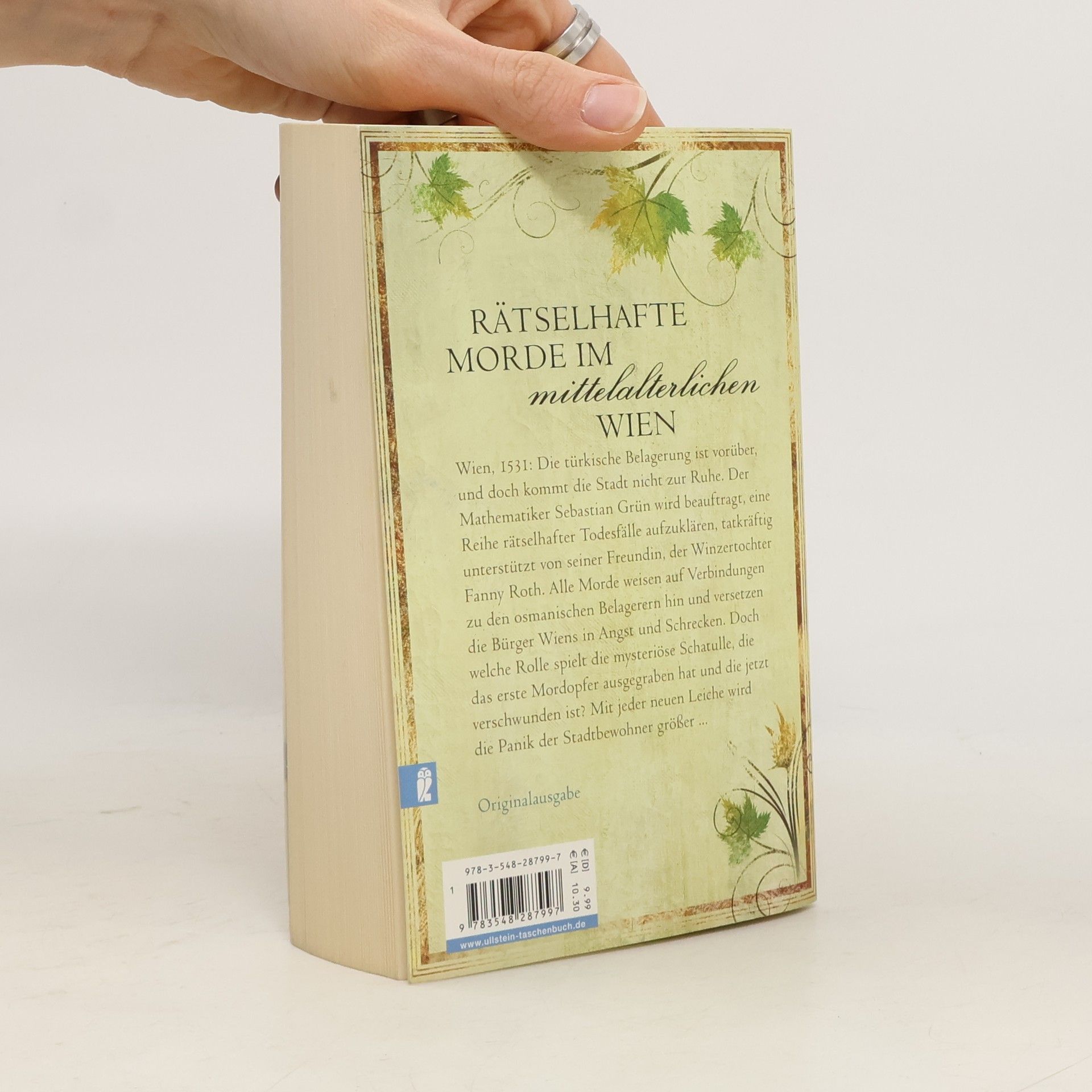 Wien, 1531: Die türkische Belagerung ist vorüber, und doch kommt die Stadt nicht zur Ruhe. Der Mathematiker Sebastian Grün wird beauftragt, eine Reihe rätselhafter Todesfälle aufzuklären, tatkräftig unterstützt von seiner Freundin, der Winzertochter Fanny Roth. Alle Morde weisen auf Verbindungen zu den osmanischen Belagerern hin und versetzen die Bürger Wiens in Angst und Schrecken. Doch welche Rolle spielt die mysteriöse Schatulle, die das erste Mordopfer ausgegraben hat und die jetzt verschwunden ist? Mit jeder neuen Leiche wird die Panik der Wiener größer ...