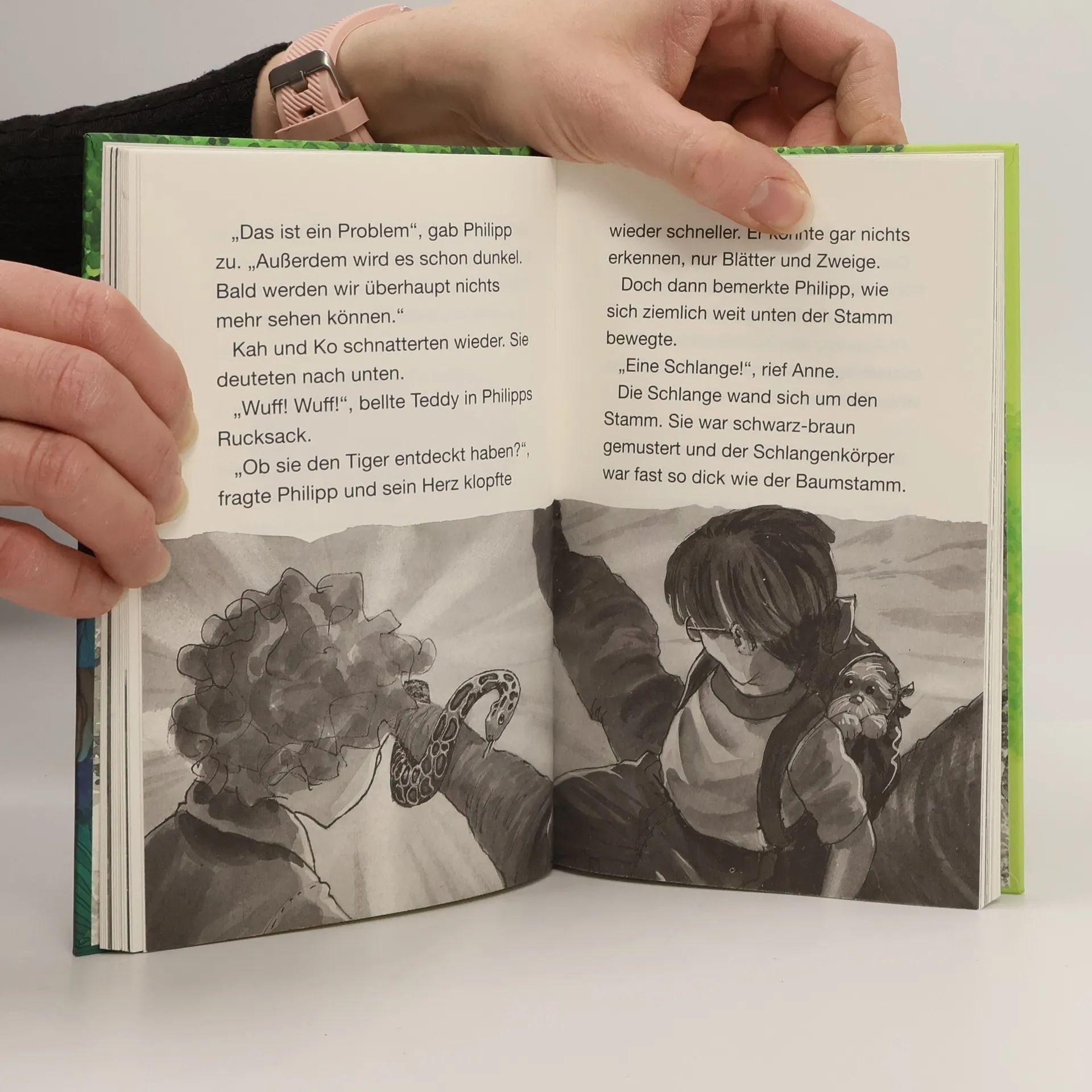 Die erfolgreiche amerikanische Kinderbuchautorin schildert im neuen Band der Reihe "Das magische Baumhaus" (zuletzt "Auf der Fährte der Indianer", ID 8/03) eine magische Reise des 8jährigen Philipp und seiner 7jährigen Schwester aus den heutigen USA nach Indien. Allerdings handelte es sich dabei um ein eigentümlich menschenleeres Land, denn außer einem im Urwald lebenden Einsiedler treffen die Kinder nur auf Tiere wie Schlangen, Affen, Tiger und Elefanten. Diese verhalten sich aber eher wie Stofftiere und lassen sich gerne streicheln oder wie ein Tiger aus einer Tierfalle befreien, ohne die Kinder anzugreifen. Ein verzaubertes Hündchen sorgt für etwas Komik und Spannung, rettet aber die recht alberne Geschichte nicht. Dazu ist sie zudem durch oft mehrmals wiederholte eingeschobene Sachinformationen zu Tieren noch aufdringlich didaktisch. Wenig überzeugend sind auch die sehr dunklen SchwarzWeißIllustrationen, deren Details kaum zu erkennen sind. Abgesehen für Kinder, die beim Lesen Schwierigkeiten haben und nach kurzen einfachen Texten verlangen, zur Anschaffung ungeeignet.. Die magische Reise des kleinen Philipp und seiner Schwester ins Reich der Tiger, nach Indien. Ab 8.