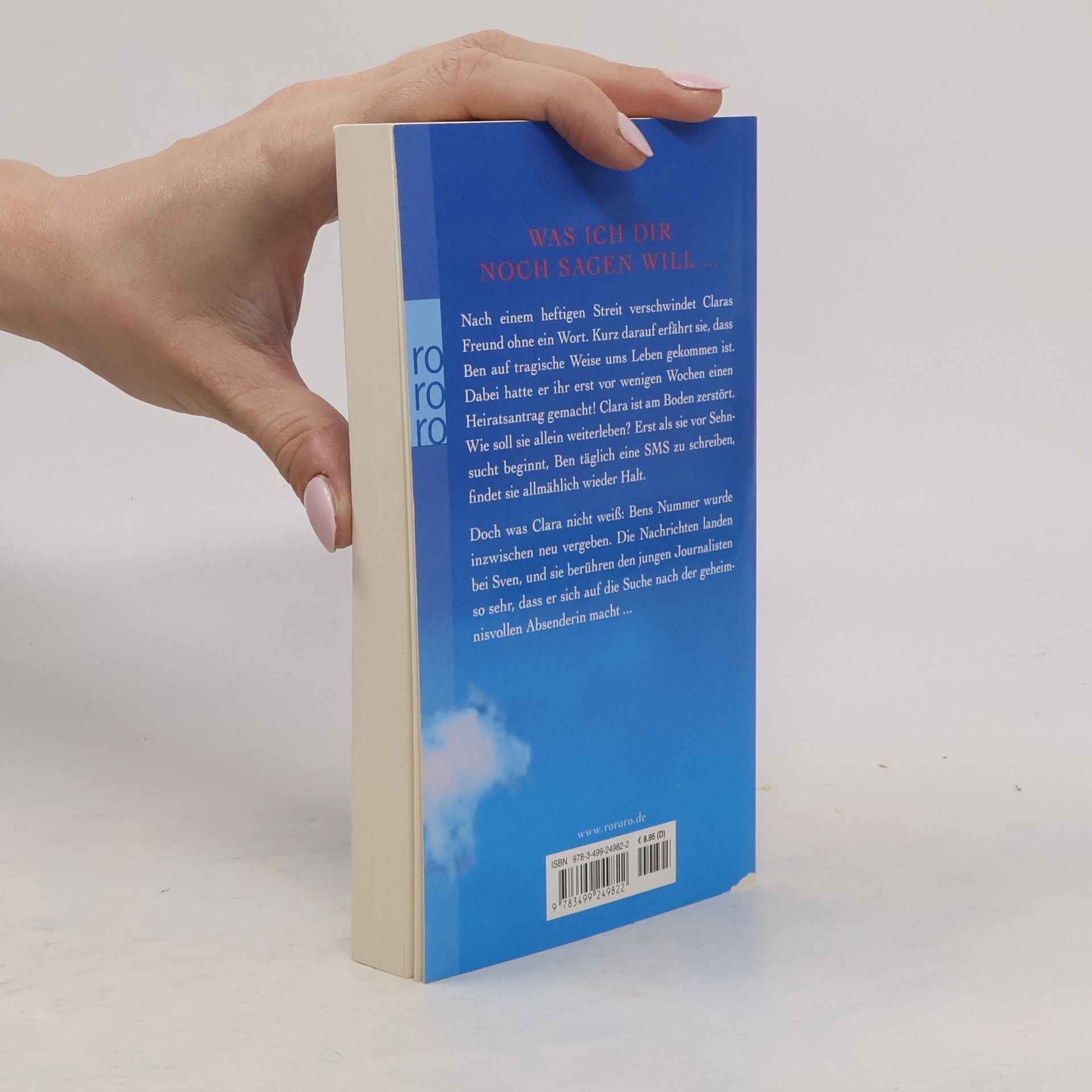 Was ich dir noch sagen will ... Nach einem heftigen Streit verschwindet Claras Freund ohne ein Wort. Kurz darauf erfährt sie, dass Ben auf tragische Weise ums Leben gekommen ist. Dabei hatte er ihr erst vor wenigen Wochen einen Heiratsantrag gemacht! Clara ist am Boden zerstört. Wie soll sie allein weiterleben? Erst als sie vor Sehnsucht beginnt, Ben täglich eine SMS zu schreiben, findet sie allmählich wieder Halt. Doch was Clara nicht weiß: Bens Nummer wurde inzwischen neu vergeben. Die Nachrichten landen bei Sven, und sie berühren den jungen Journalisten so sehr, dass er sich auf die Suche nach der geheimnisvollen Absenderin macht ...