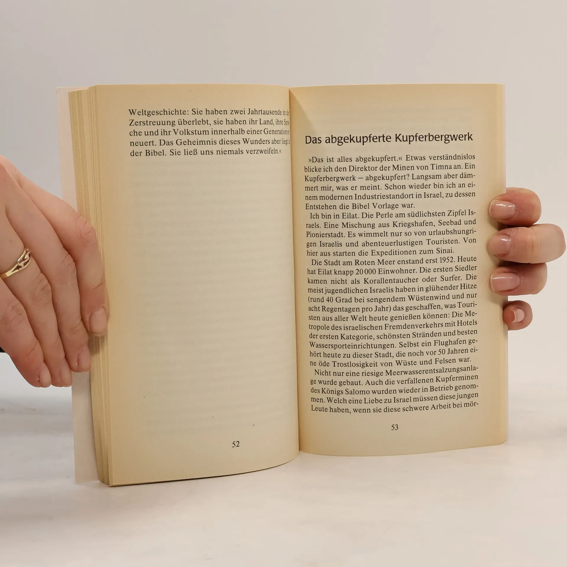 Erlebnisse, Entdeckungen und Begegnungen im Heiligen Land. Peter Hahne, bekannt und beliebt bei Millionen TV-Zuschauern, schildert Höhepunkte seiner zahlreichen Israelreisen. Wie immer packend und aktuell, humorvoll und nachdenklich. Es geht um neueste Ausgrabungen und Funde als verblüffende Hinweise für die Glaubwürdigkeit der Bibel. Um biblische Vorbilder für heutige Wirtschafts- und Militärpolitik. Um aktuelle Nahost-Fragen im Lichte der Bibel. Rund 20 Kurzgeschichten: Wasser ist Leben, Operation Salomo, Bibellesen im Bunker, Naomis Lied, Paradies für Nichtschwimmer.