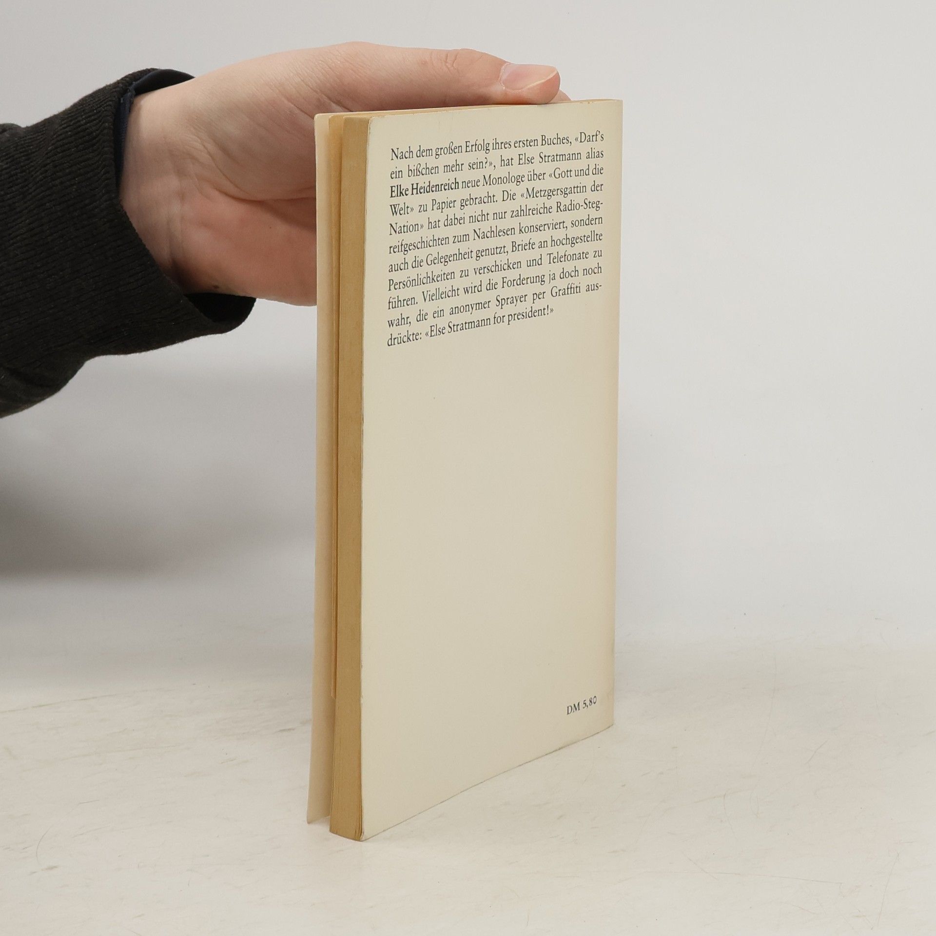 Legendär: Elke Heidenreich erklärt als Else Stratmann die Welt. Mit Else Stratmann durchs Leben: Ob es um unerwünschte Weihnachtsgeschenke, Männermode oder Liebesbriefe nach Paris geht – Else Stratmann weiß Bescheid. Sogar, wenn es um so schwierige Dinge wie Demokratie geht: „Demmokratie, datt is datt, watt wir hier so ham, nä, alle Dingens- äh- Staatsgewalt geht vonnet Volk aus, also eigentlich regieren Sie un ich, aber datt is schwer zu begreifen, au Mann.