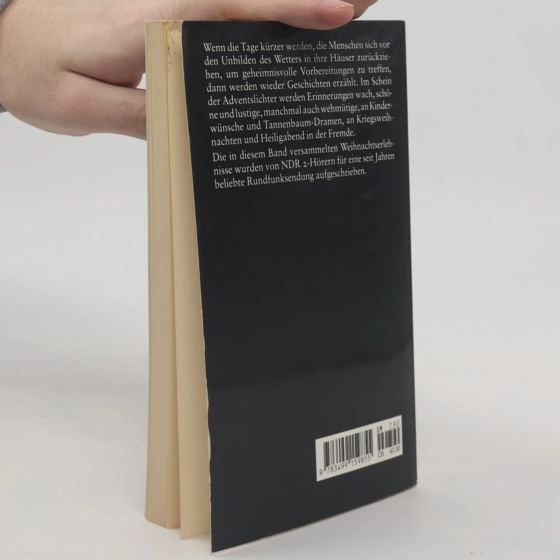 Wenn die Tage kürzer werden, die Menschen sich vor den Unbilden des Wetters in ihre Häuser zurückziehen, um geheimnisvolle Vorbereitungen zu treffen, dann werden wieder Geschichten erzählt. Im Schleier der Adventslichter werden Erinnerungen wach, schöne und lustige, manchmal wehmütige, an Kinderwünsche und Tannenbaumdramen, an Kriegsweihnachten und Heiligabend in der Fremde. Die in diesem Band versammelten Weihnachtserlebnisse wurden von NDR-2-Hörern fü eine seit Jahren beliebte Rundfunksendung aufgeschrieben.