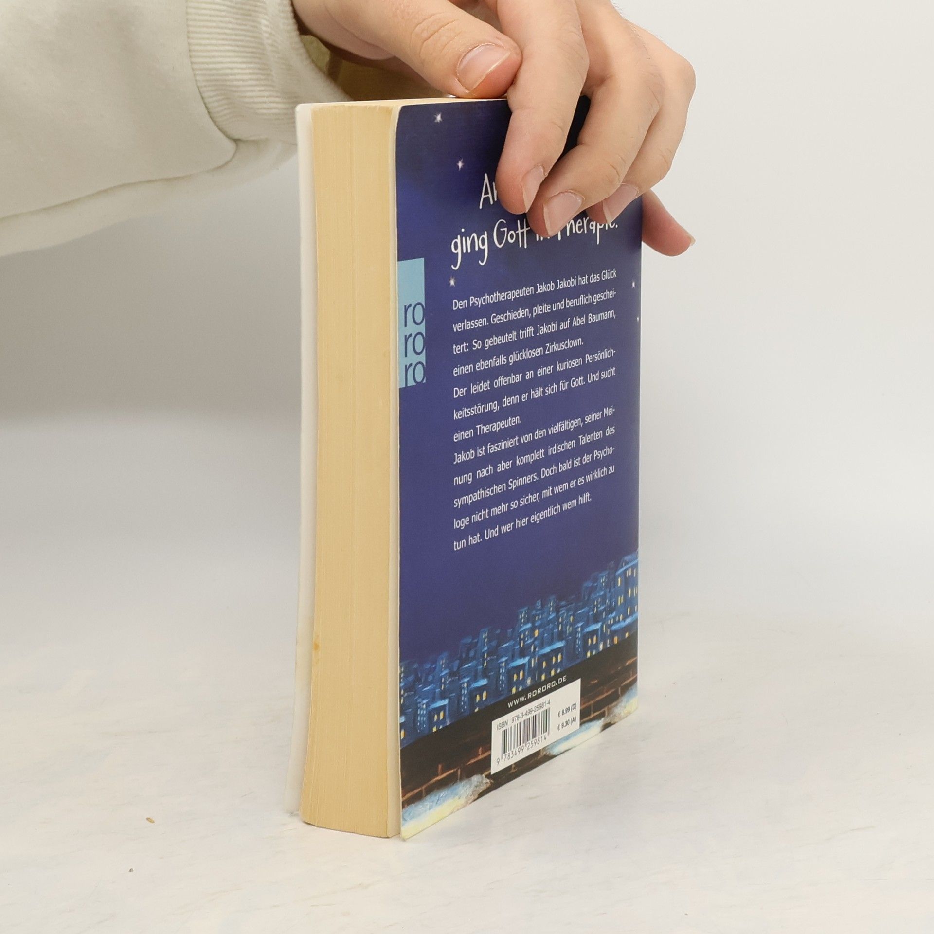 Am achten Tag ging Gott in Therapie Den Psychotherapeuten Jakob Jakobi hat das Glück verlassen. Geschieden, pleite und beruflich gescheitert: So gebeutelt trifft Jakobi auf Abel Baumann, einen ebenfalls glücklosen Zirkusclown.Der leidet offenbar an einer kuriosen Persönlichkeitsstörung, denn er hält sich für Gott. Und sucht einen Therapeuten. Jakob ist fasziniert von den vielfältigen, seiner Meinung nach aber komplett irdischen Talenten des sympathischen Spinners. Doch bald ist der Psychologe nicht mehr so sicher, mit wem er es wirklich zu tun hat. Und wer hier eigentlich wem hilft.