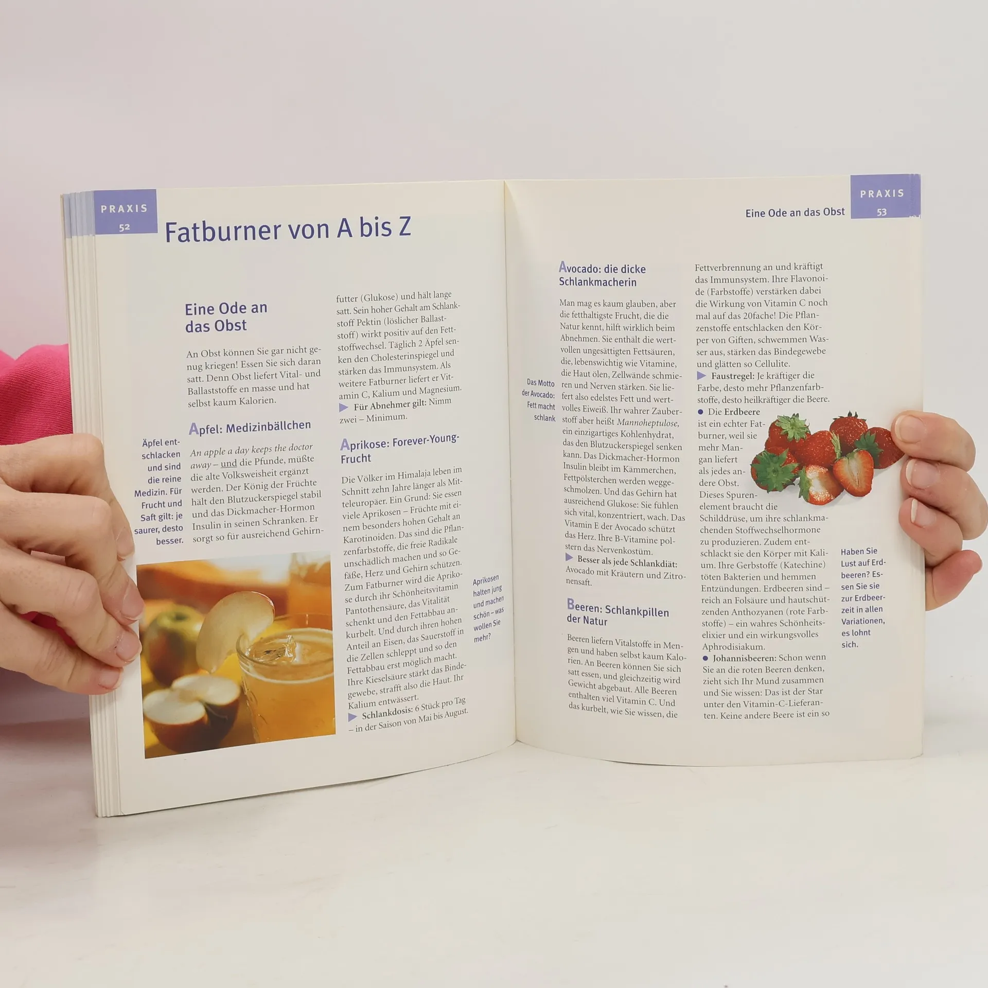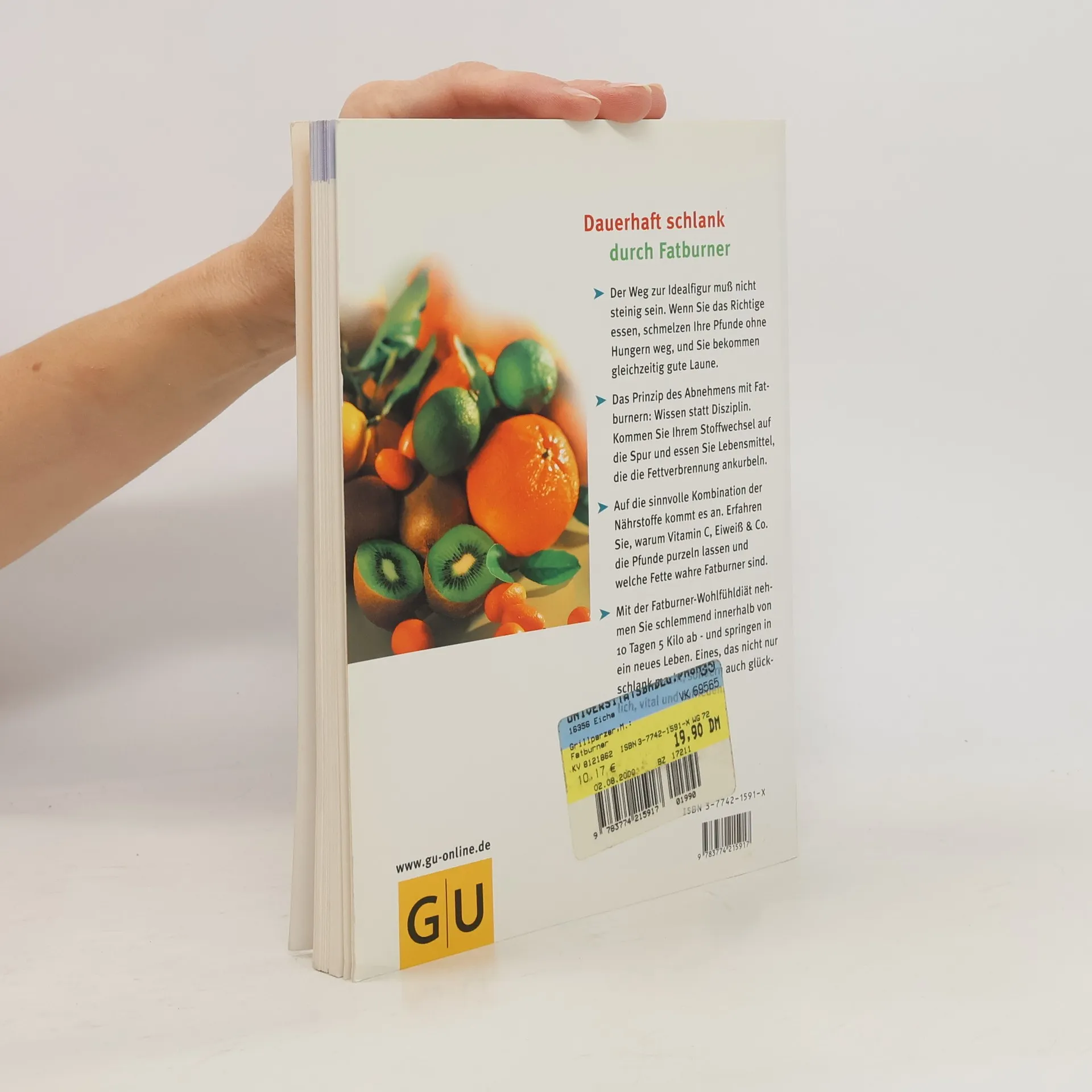 Abnehmen ohne Jo-Jo-Effekt. 'Fatburner' sind Vitalstoffe, die das Fett in den Zellen zum Schmelzen bringen: Sie aktivieren den Fettabbau in den Fettzellen oder kurbeln die Produktion von Hormonen an, die schlank, fit und glücklich machen. Der Ratgeber verrät, wie eine zeitgemäße Ernährung aussieht und in welchen Lebensmitteln welche Vitalstoffe stecken. Dazu gibt es eine komplette 14-Tage-Biostoff-Diät mit köstlichen und leichten Rezepten, die den Stoffwechsel auf Trab bringen und die Pfunde purzeln lassen, sowie ein ergänzendes Wellness-Programm mit Gymnastik, Massagen und vielem mehr. Als Extra ist eine Tabelle zum Einstecken enthalten.