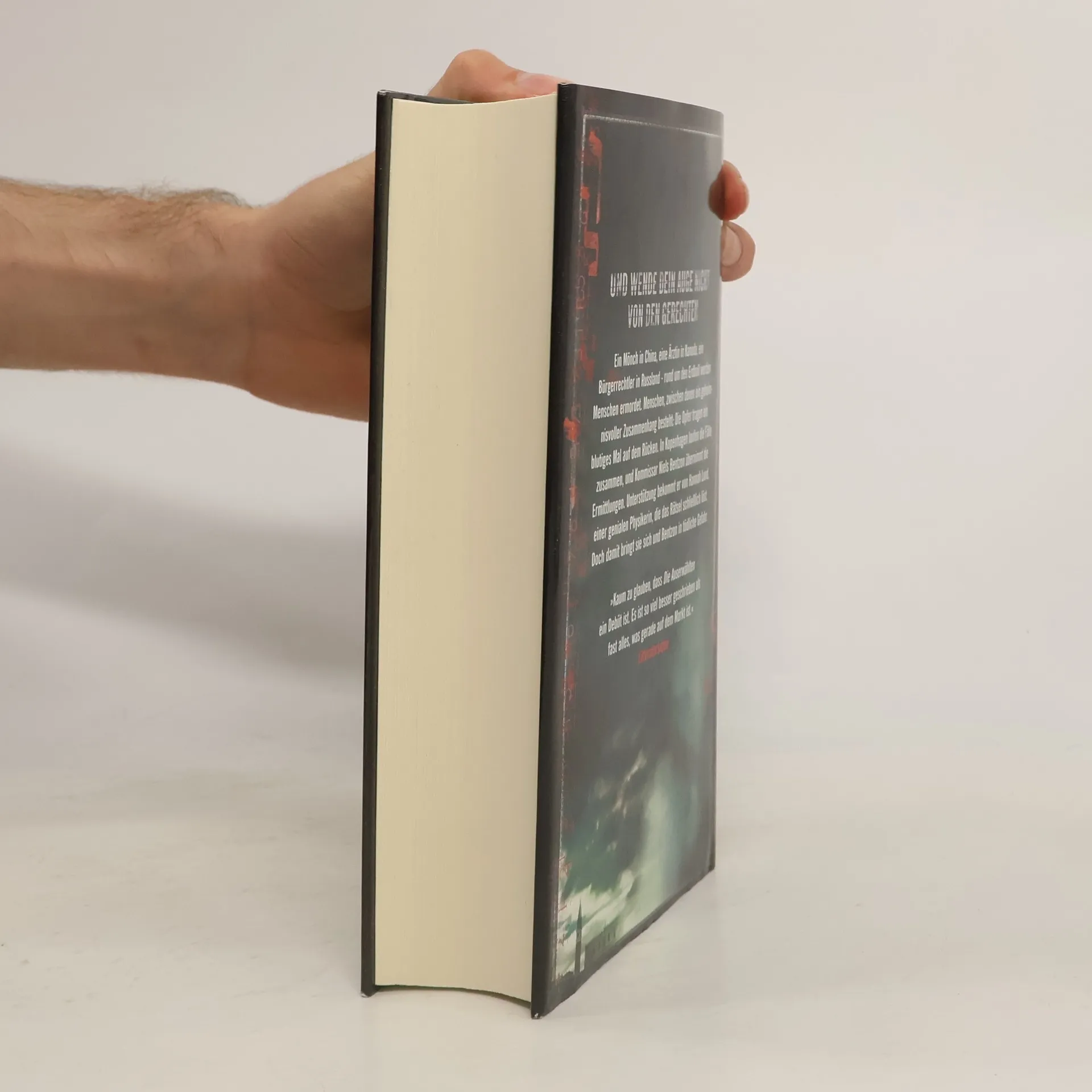 Und wende dein Auge nicht von den Gerechten Kopenhagen, 2009. Die Vorbereitungen auf den Klimagipfel laufen auf Hochtouren, als eine dringende Sicherheitswarnung bei der dänischen Polizei eingeht. Mysteriöse Todesfälle, die im Abstand von sieben Tagen an verschiedenen Orten der Welt gemeldet wurden, geben Anlass zur Sorge. Die Todesursache ist nicht zu ermitteln, doch es scheint eine Verbindung zwischen den Opfern zu geben: Ein seltsames Mal überzieht den Rücken der Toten. Interpol steht vor einem Rätsel, allerdings gibt es einen Hinweis, der nach Dänemark führt. Niels Bentzon, Kommissar bei der Kopenhagener Polizei, wird auf den Fall angesetzt. Ihm zur Seite steht die Physikerin Hannah Lund, die mit mathematischem Sachverstand zu Werke geht. Gemeinsam tragen sie Puzzleteilchen um Puzzleteilchen zusammen. Was sie schließlich zutage fördern, übersteigt zunächst ihre Vorstellungskraft – bis sie gewahr werden, dass es um ihr Leben geht.